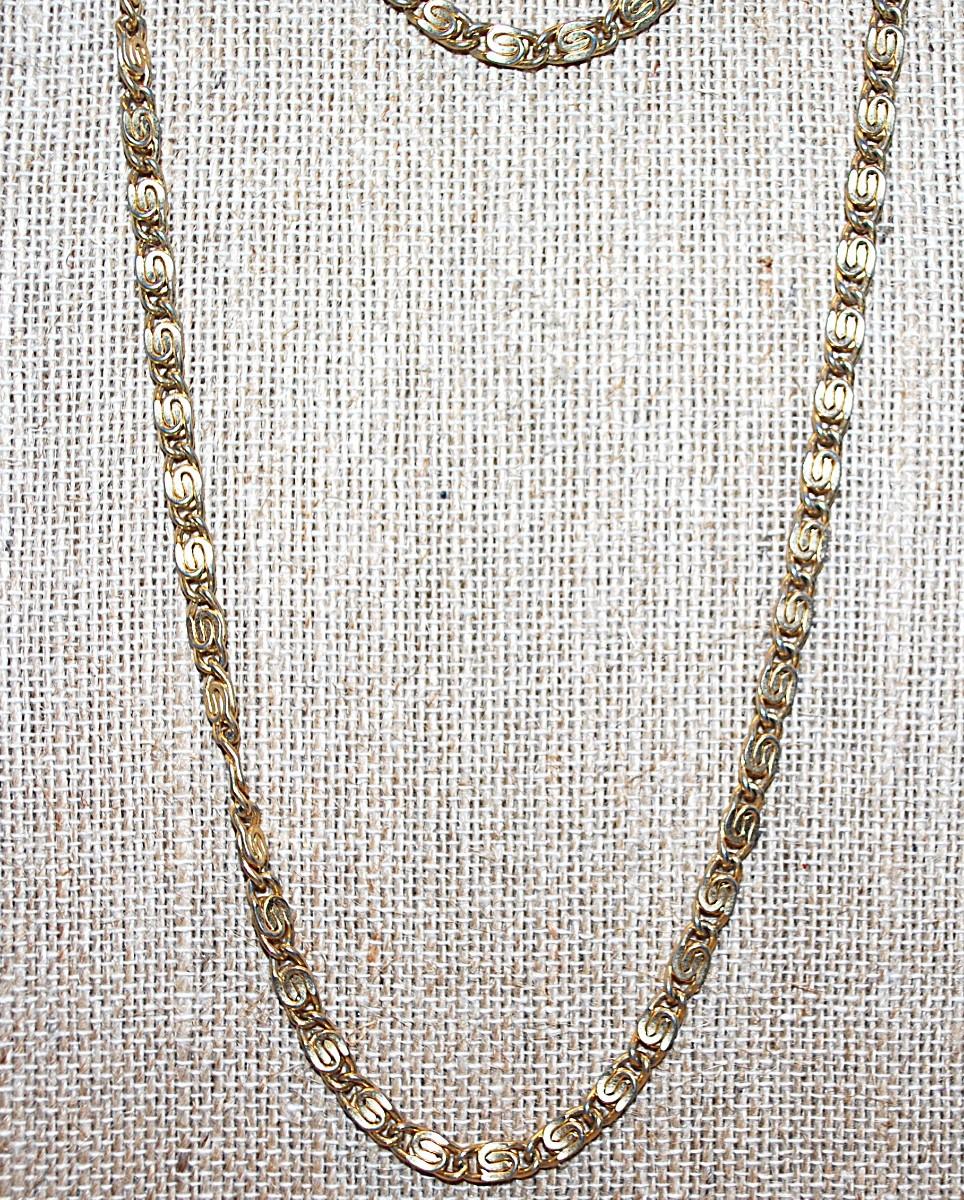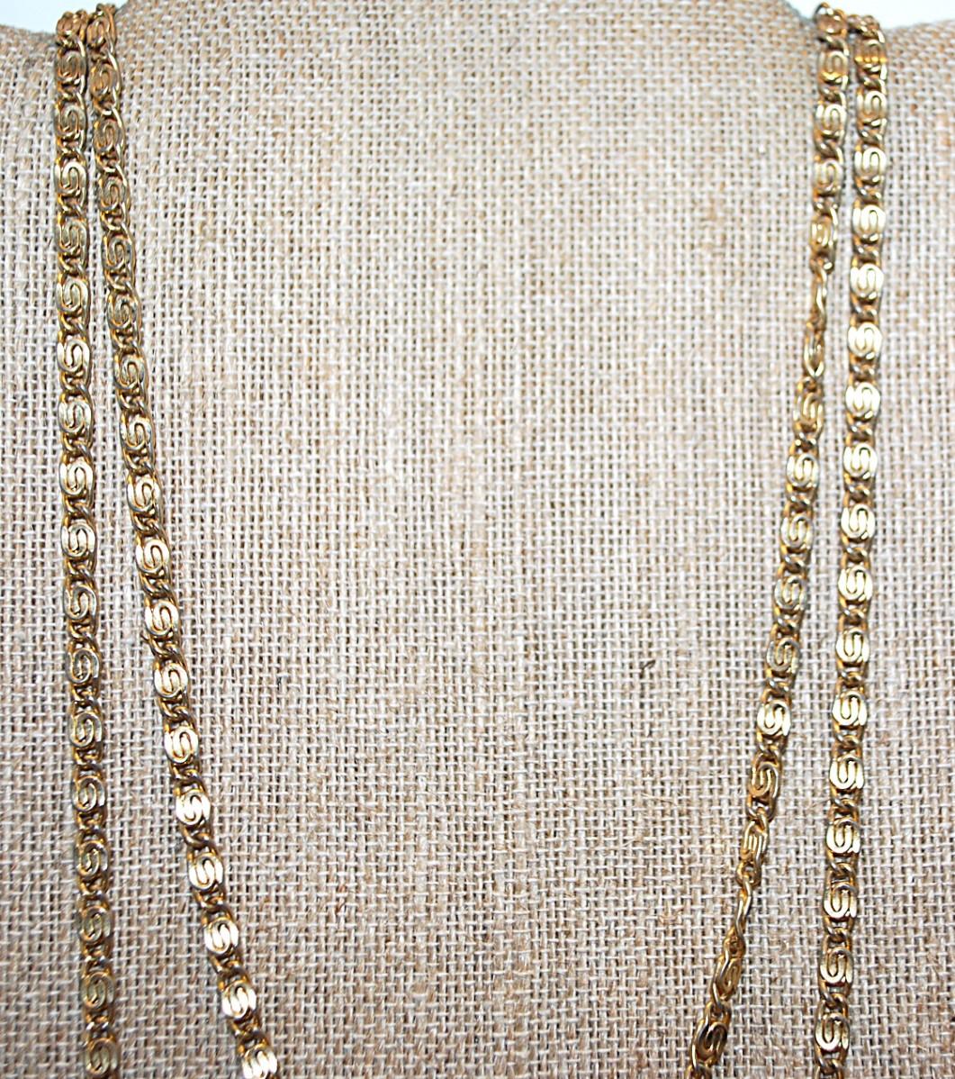Long WRAP-AROUND Gold Tone "S" Links NECKLACE with Circle Clasp 60" L