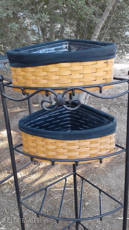 Longaberber Wrought Iron Corner Stand w/4 shelves/2 baskets/2 liners/2 protectors Like-new. $249 value.