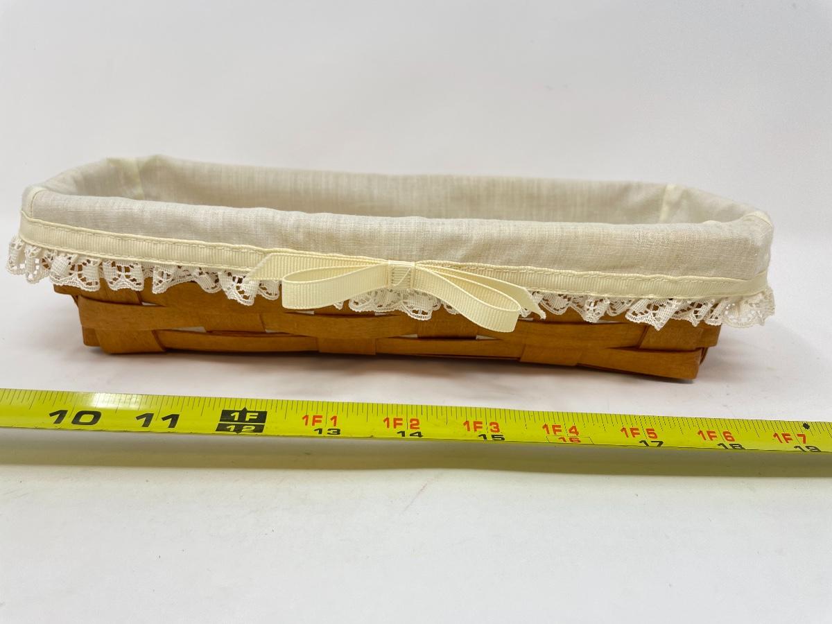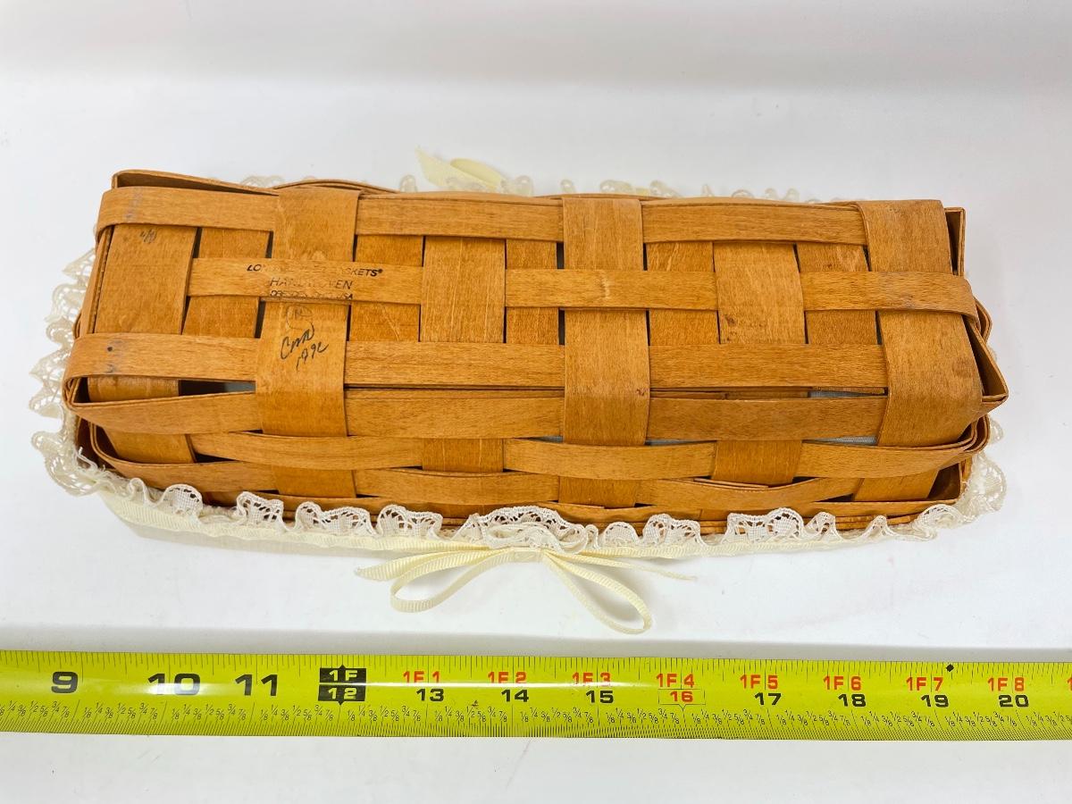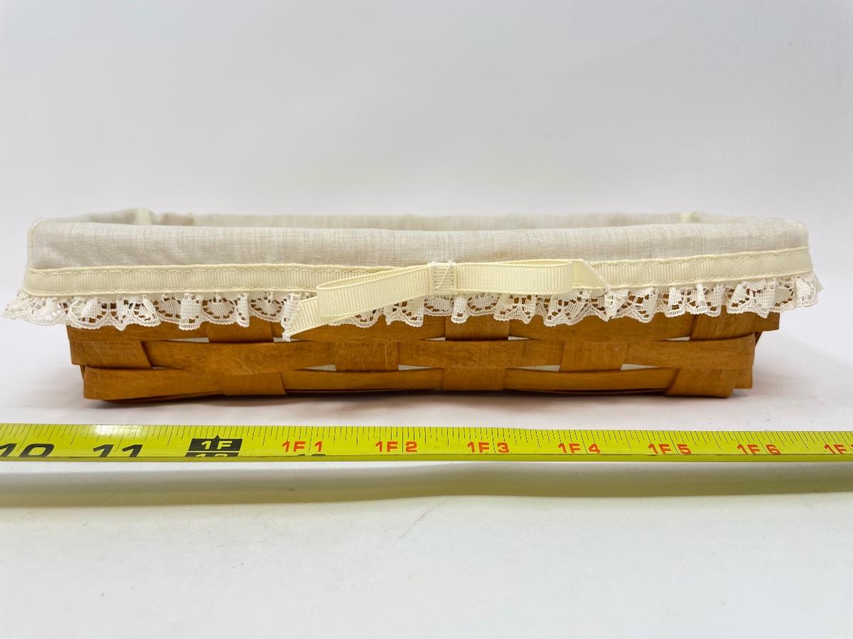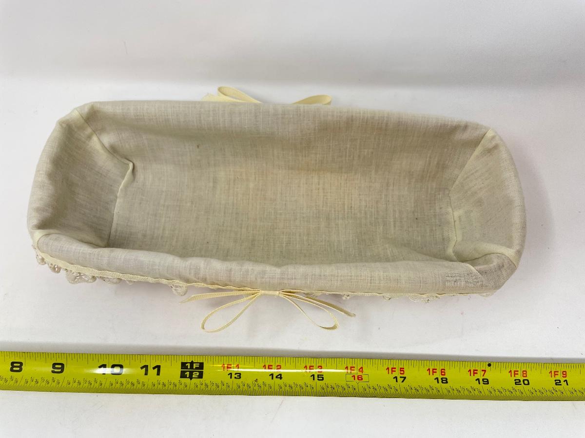 In good condition - the fabric liner does have some light staining. Measures approx 12” x 5” x 3” tall.