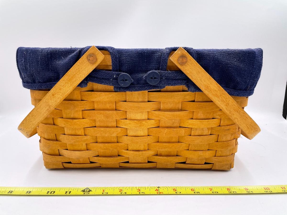 The basket itself is in good condition - the fabric lining has some wear and the plastic lining does have a piece missing.