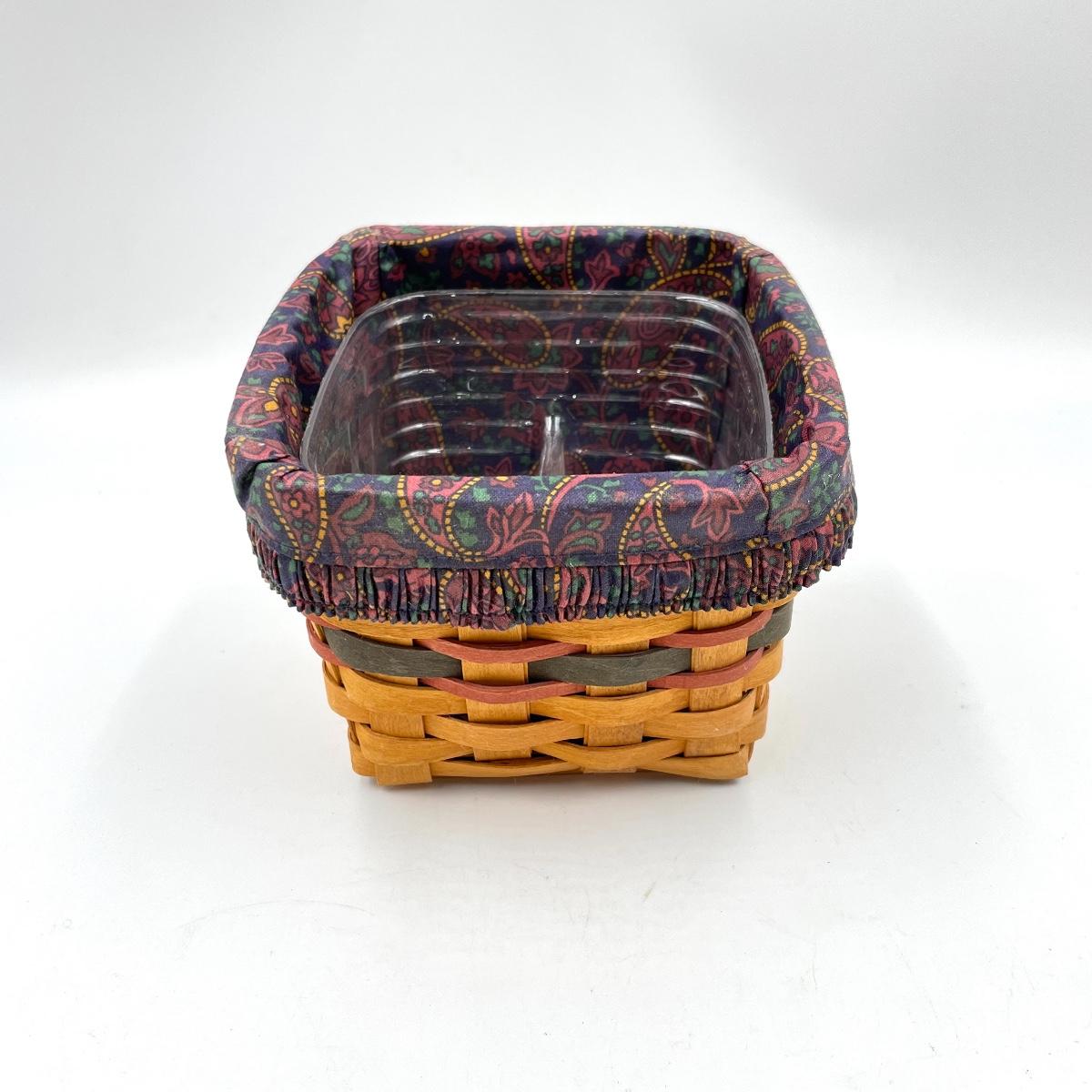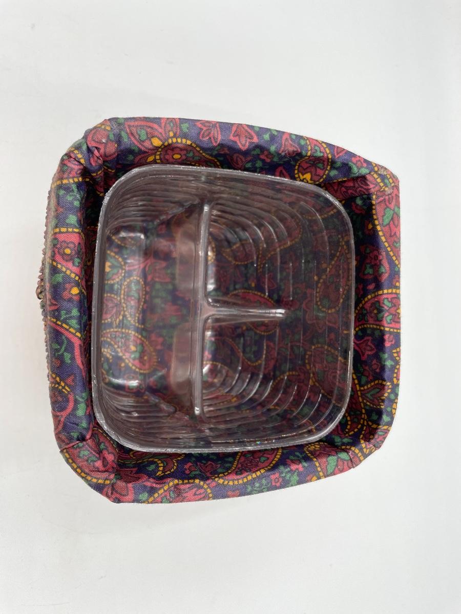 In good condition, includes divided plastic liner. Approx 6” square x 5.5” tall.