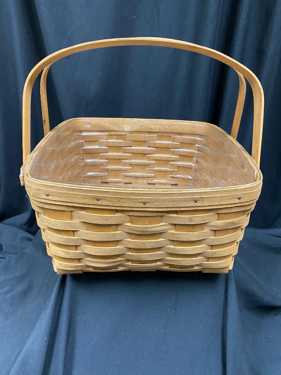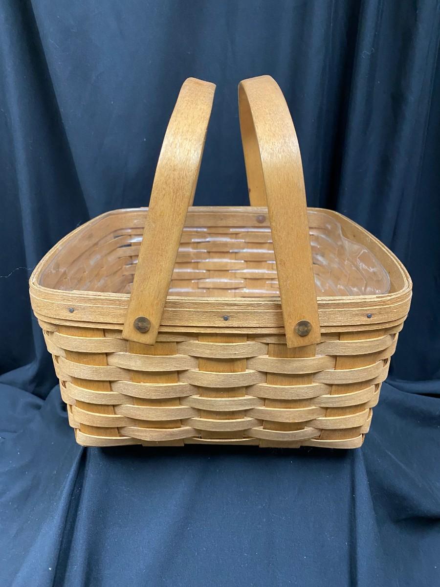 Has a plastic liner, 12 inches by 12 inches by 7 inches tall