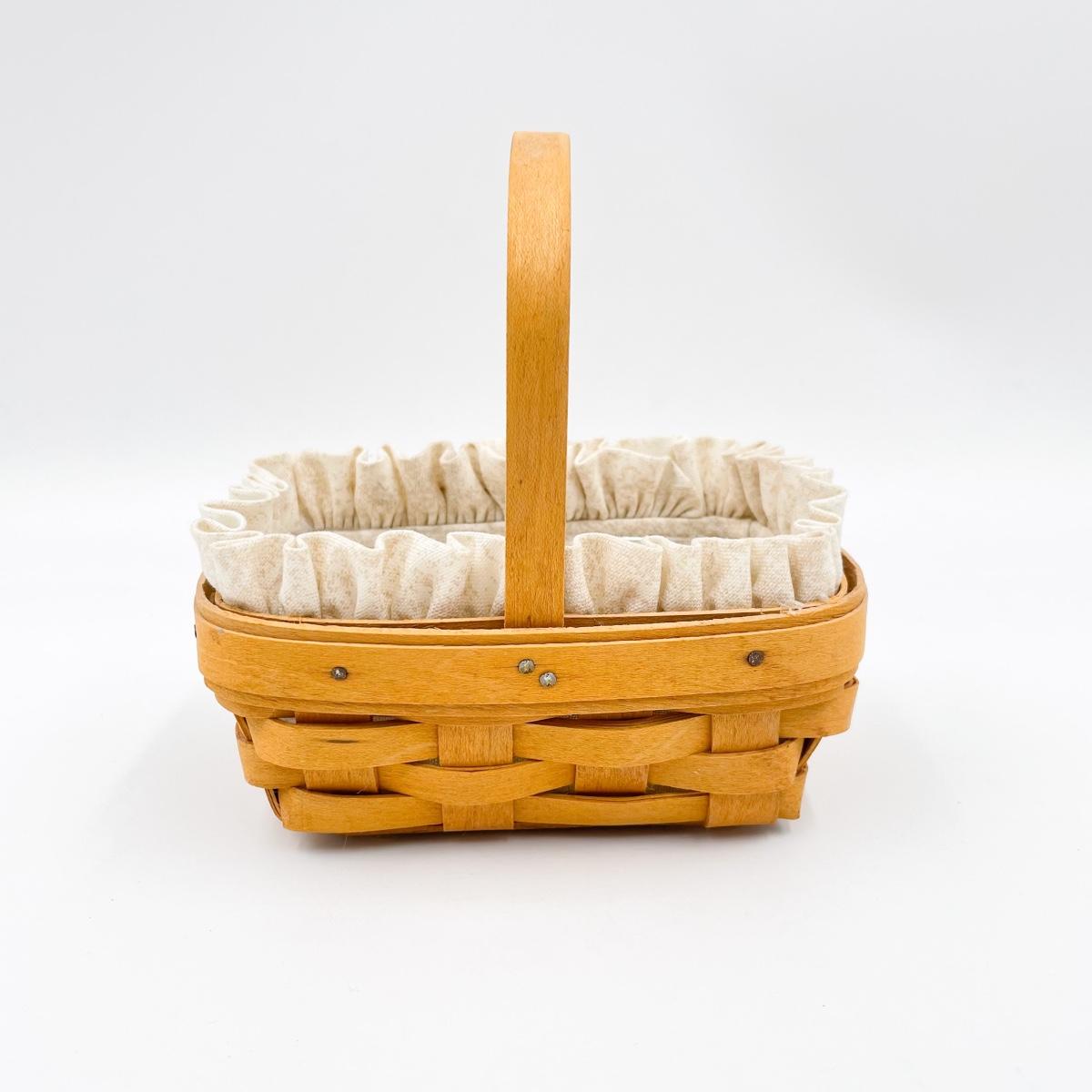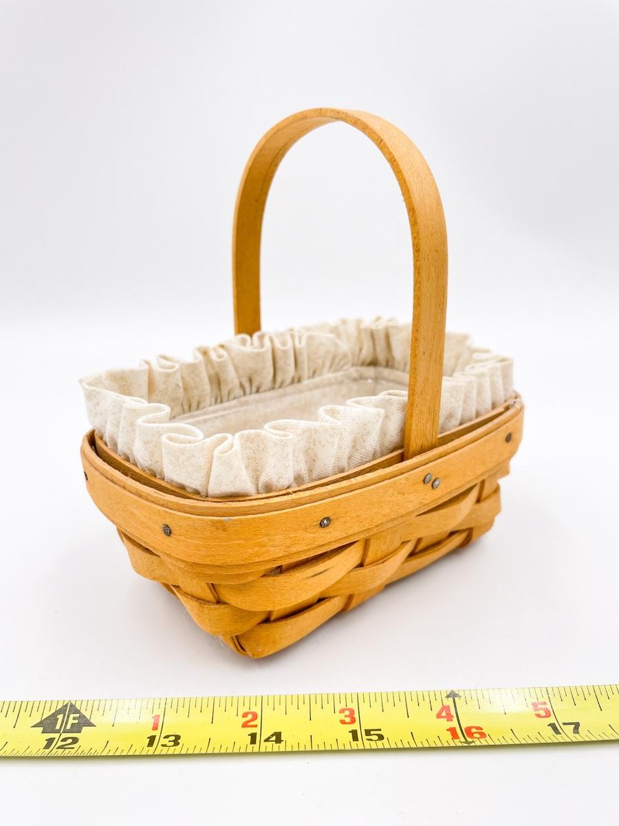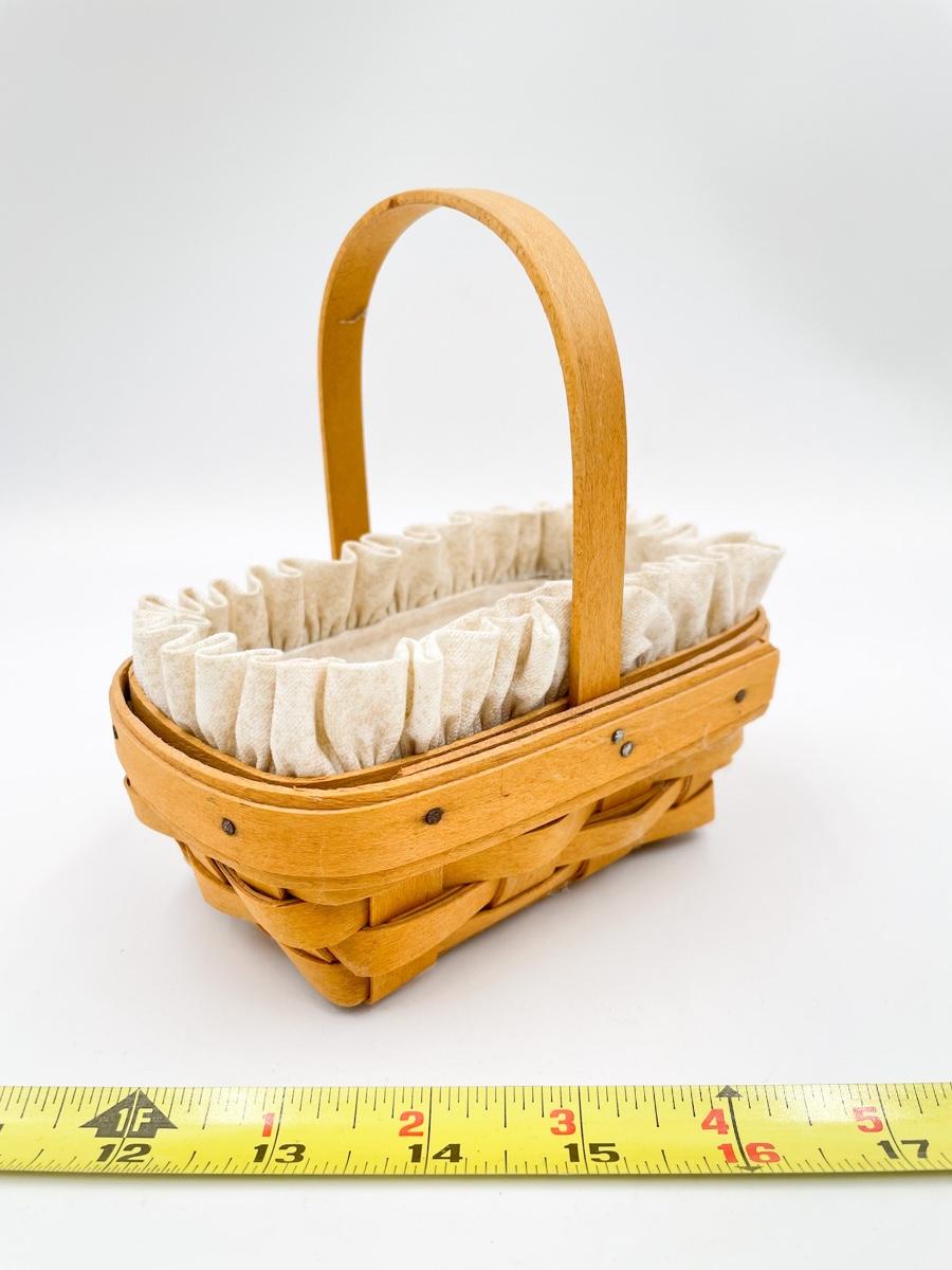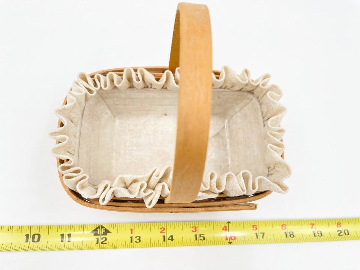 In good condition, includes fabric and plastic liner. Measures approx 6” x 4” x 2.5” tall.