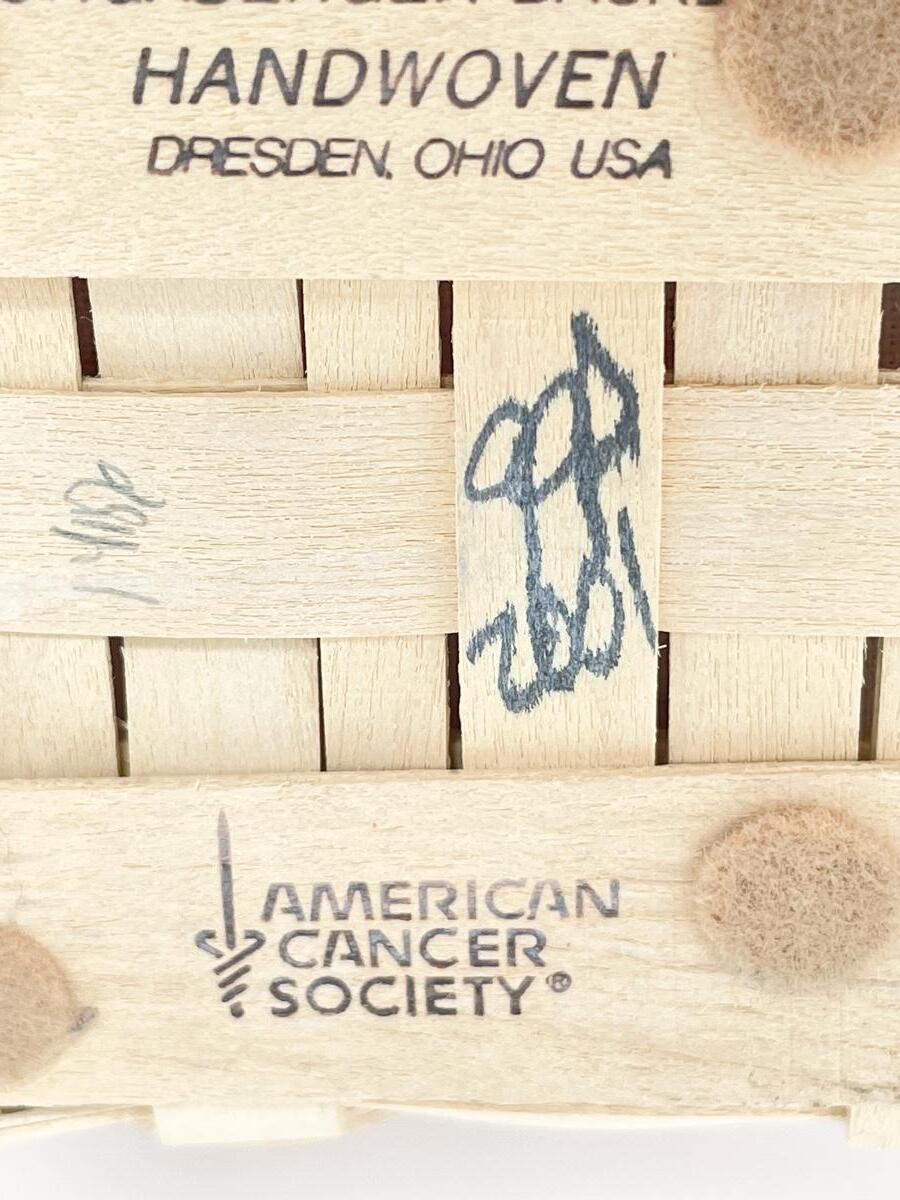 LONGABERGER 2001 AMERICAN CANCER SOCIETY “HOPE” BASKET W/ LID