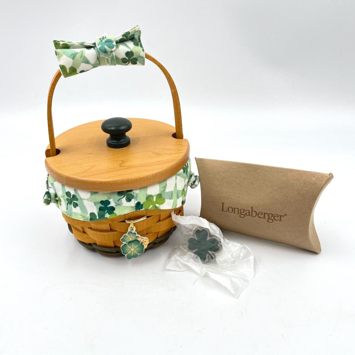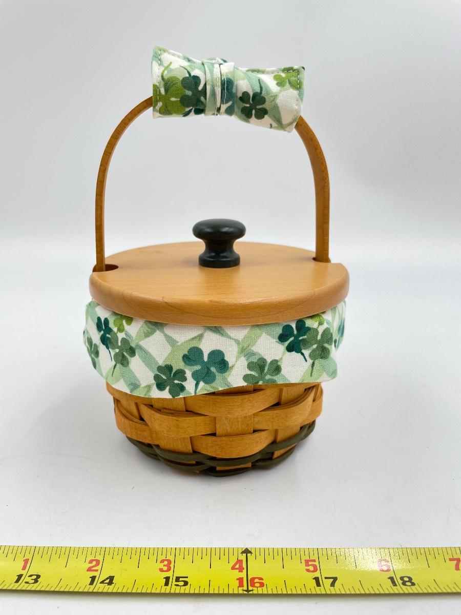 LONGABERGER 2001 “LUCKY YOU” BASKET W/ LID & SHAMROCK KNOB