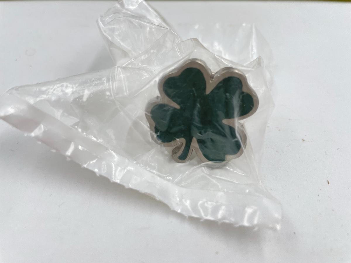 In good condition, includes plastic liner and additional shamrock handle. Measures approx 7” tall and 5” in diameter.