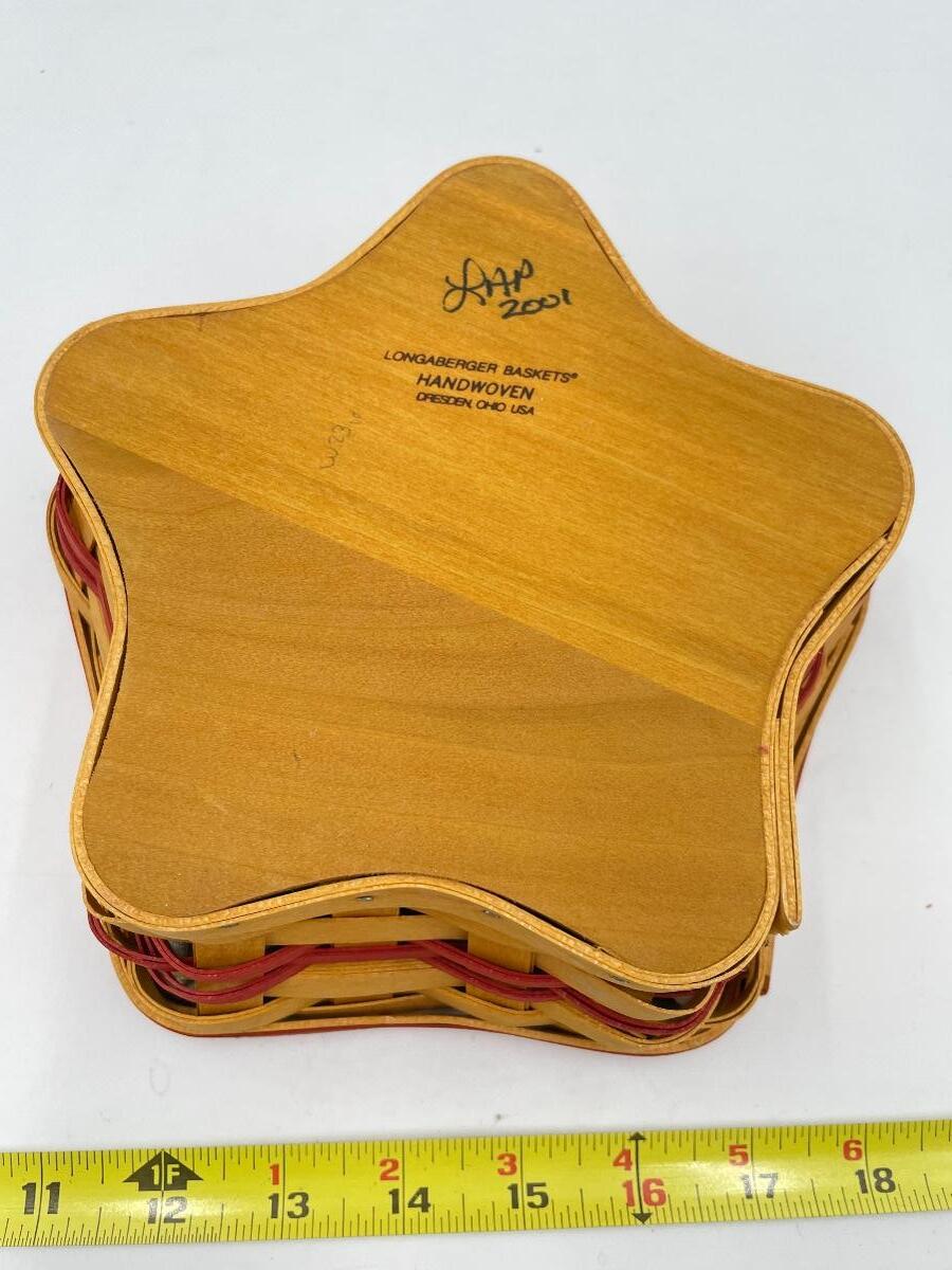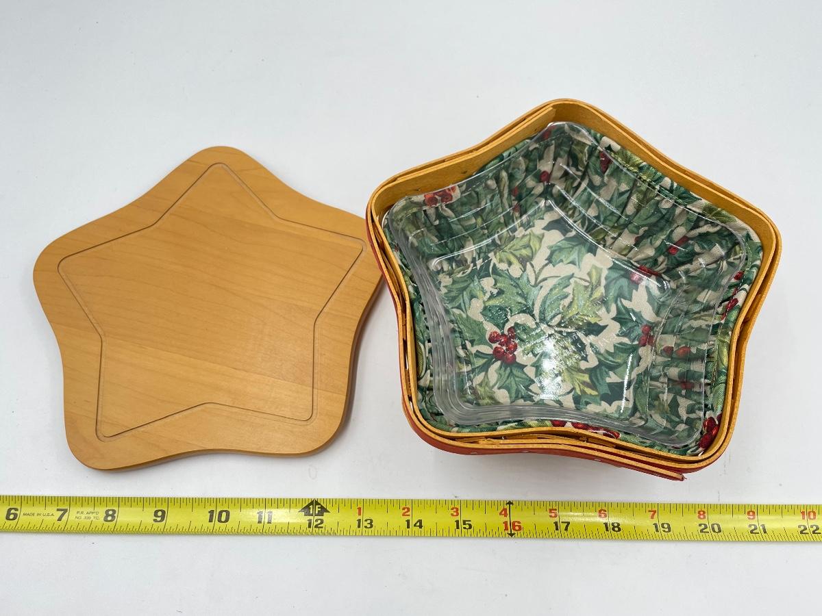 LONGABERGER 2001 STAR BASKET W/ LID & HOLLY LINER