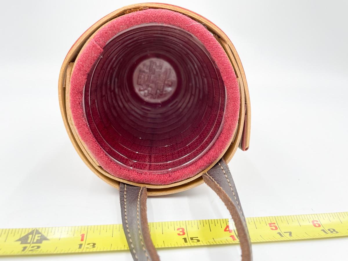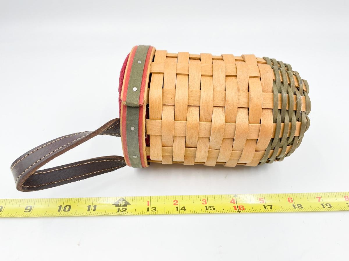 In good condition, includes fabric and plastic liner. Measures approx 4” in diameter and 6.5” long (not including handle).