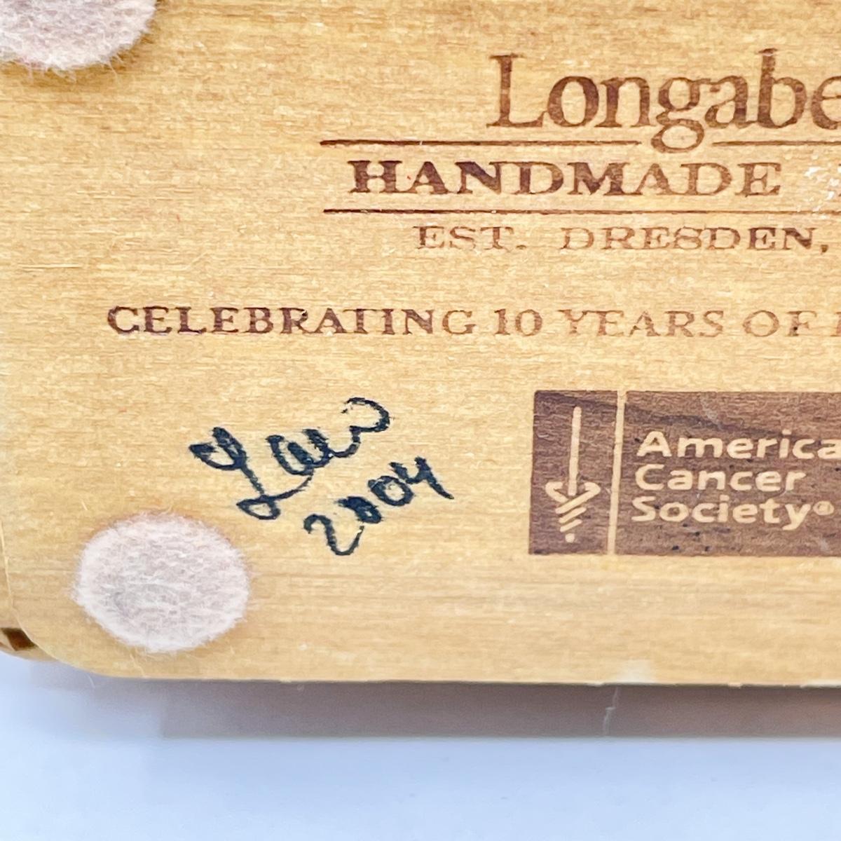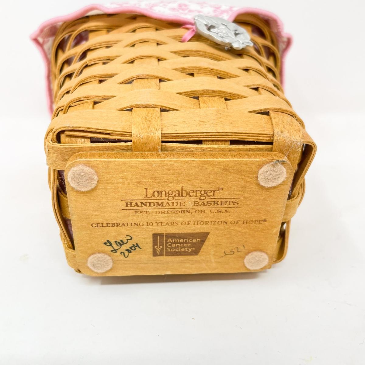 LONGABERGER 2004 AMERICAN CANCER SOCIETY “HORIZON OF HOPE” BASKET W/ LID