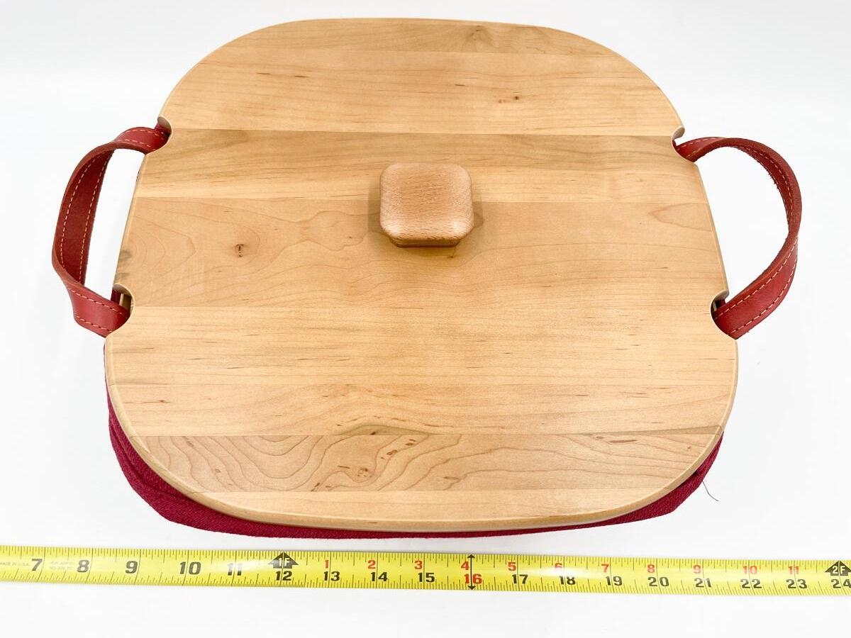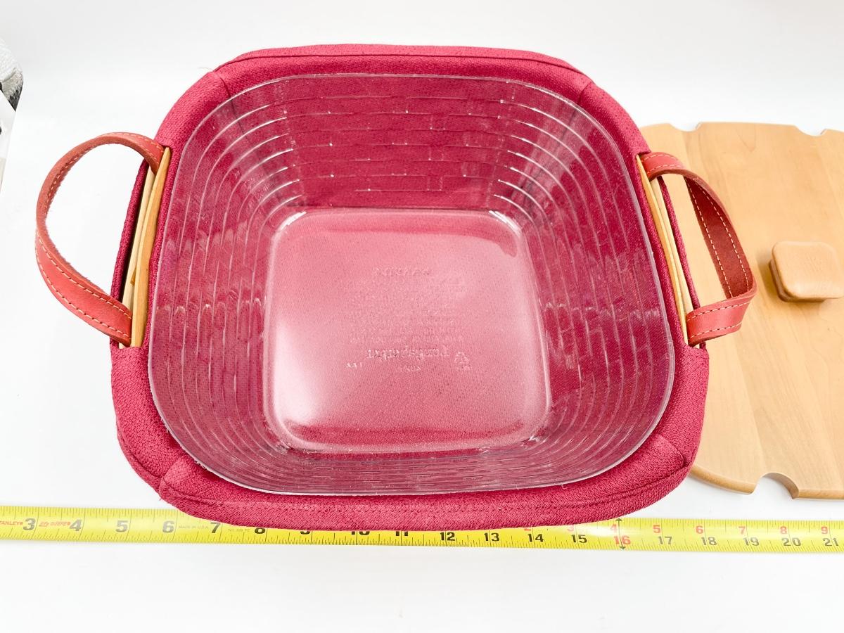 In good condition, includes fabric and plastic liner. Measures approx 12” square and 4.5” tall.