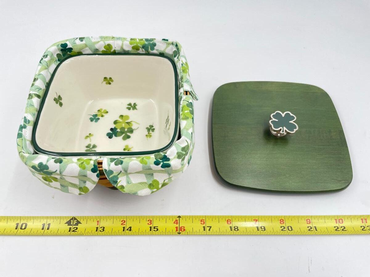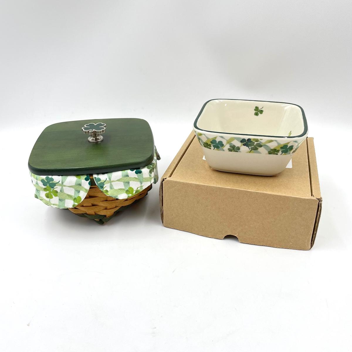 LONGABERGER 2006 “LUCKY TWIST” BASKET W/ LID & CLOVER DISH