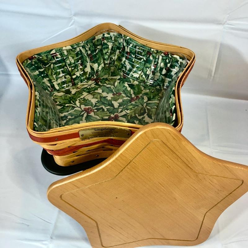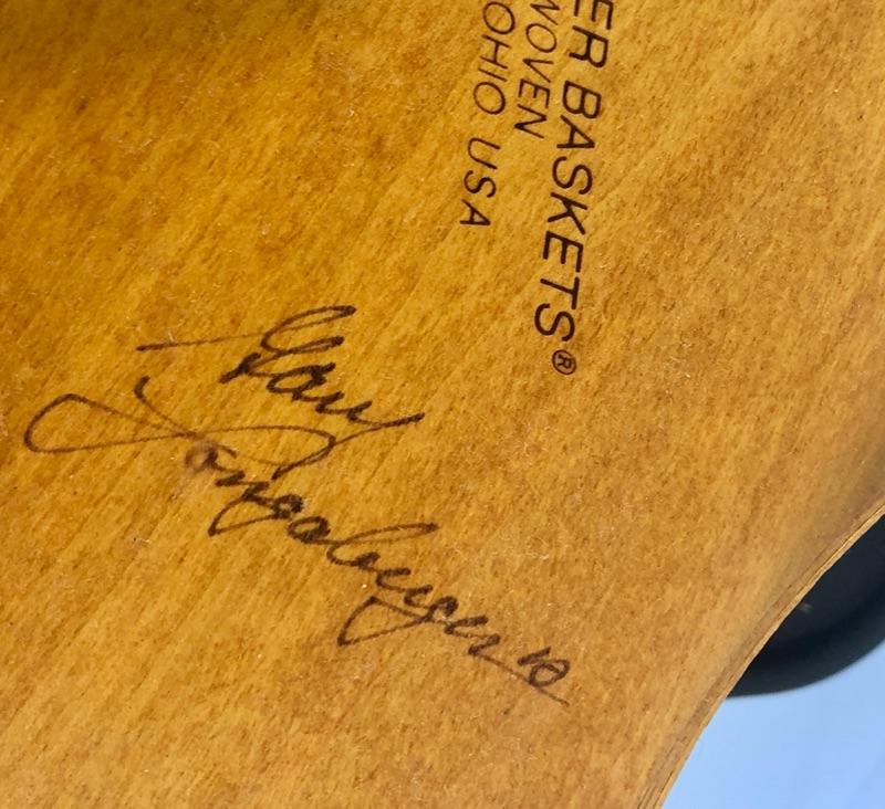 Signed by Gary Longaberger, Lynn Longaberger & the artist. Includes Wrought Iron Stand, Woodcrafts lid, basket, holly basket liner, basket protector.