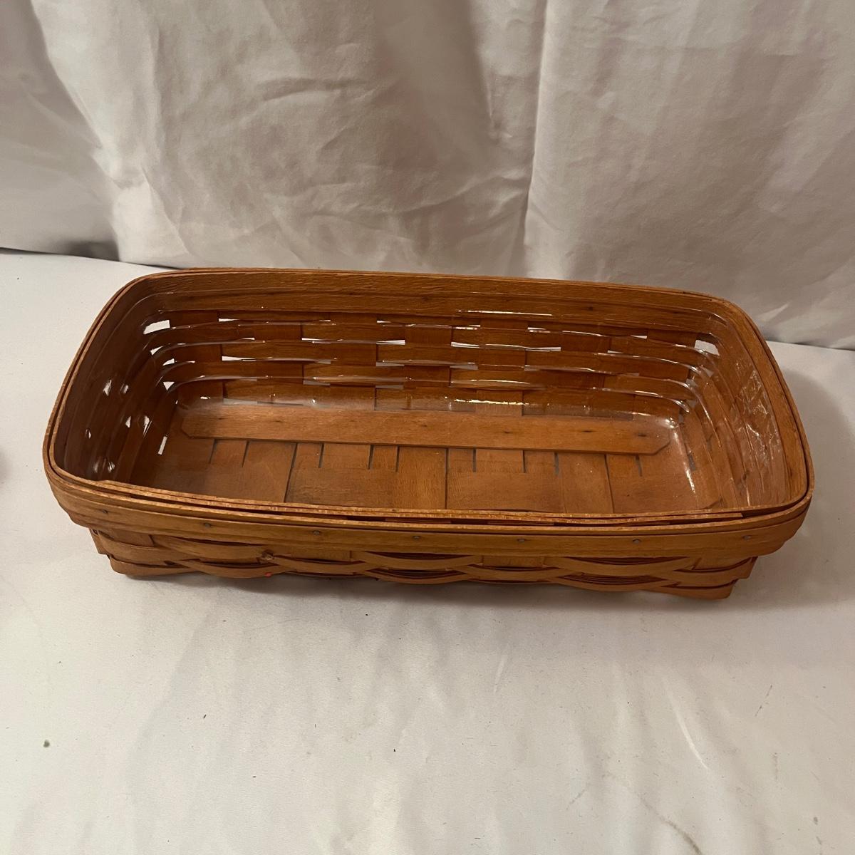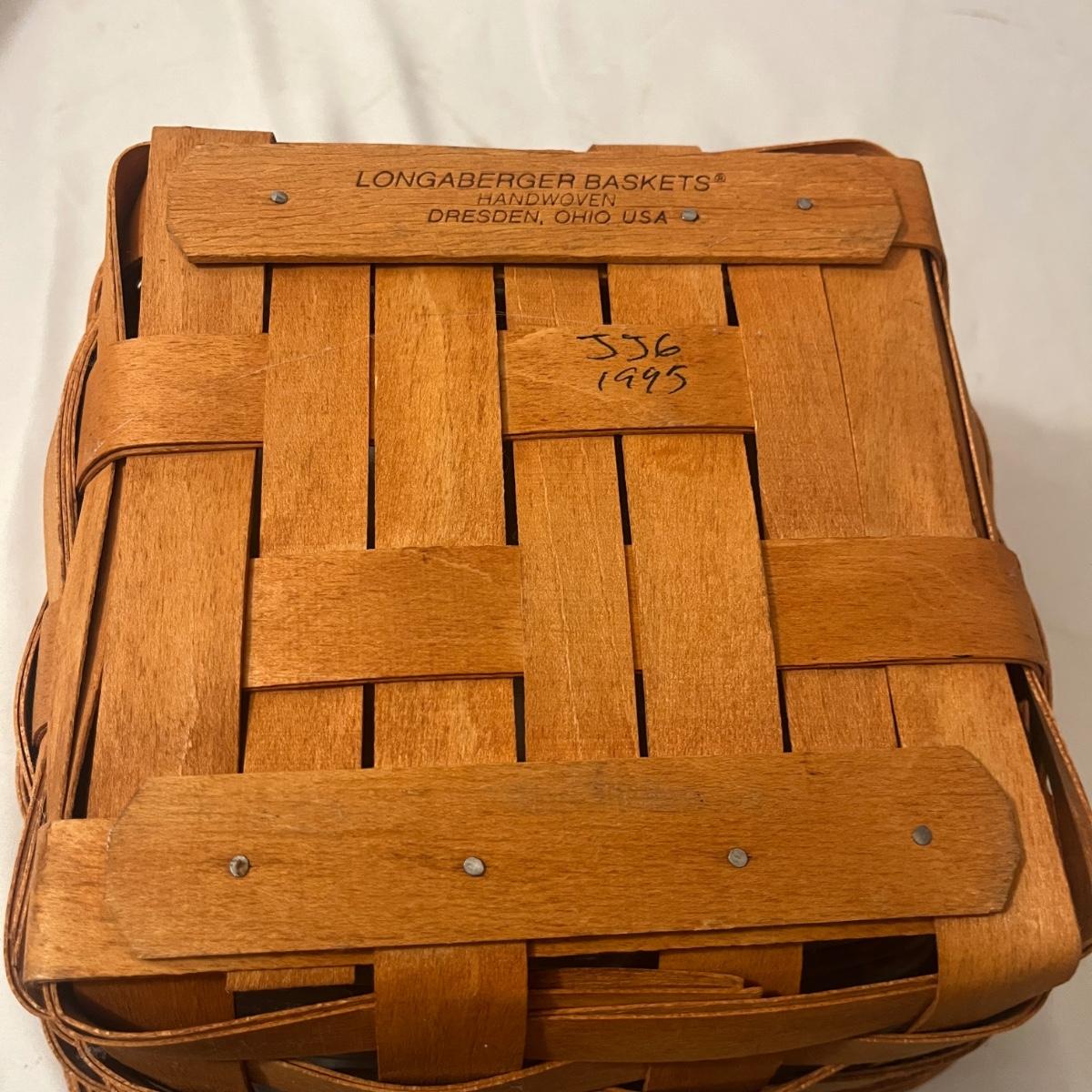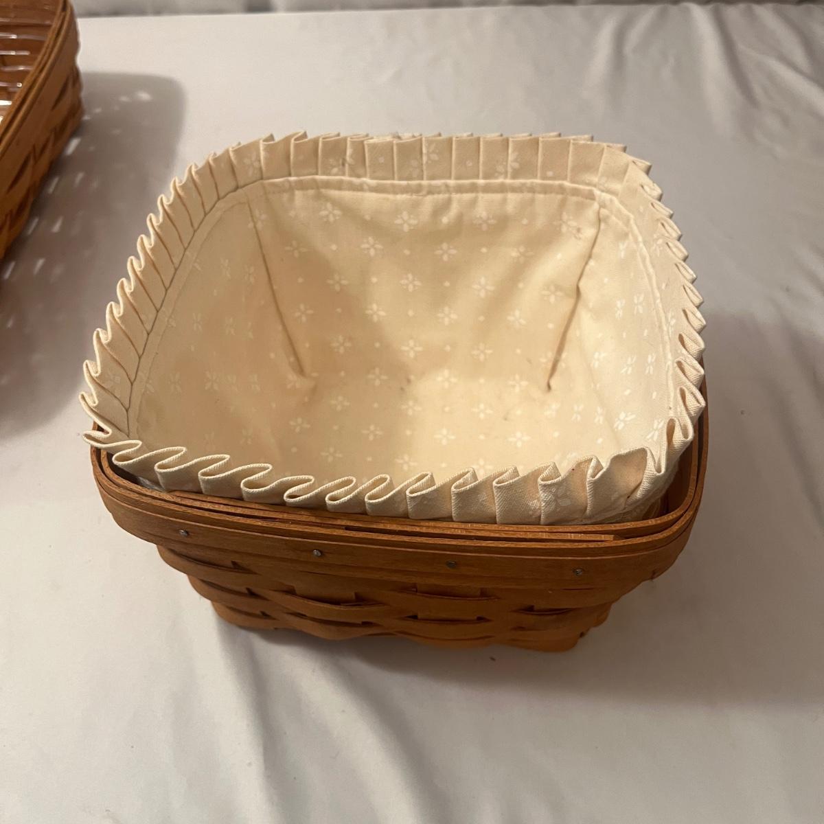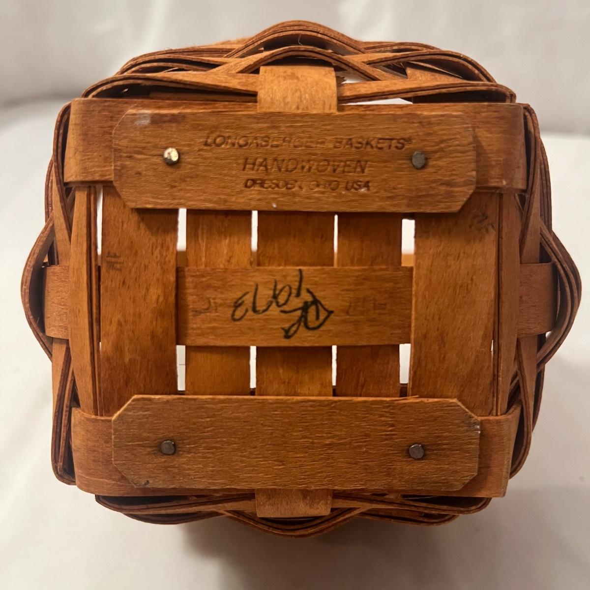 Lot includes five Longaberger hand woven baskets in a variety of sizes and shapes. Tallest basket measures 10” x 6” x 13”H including handle.