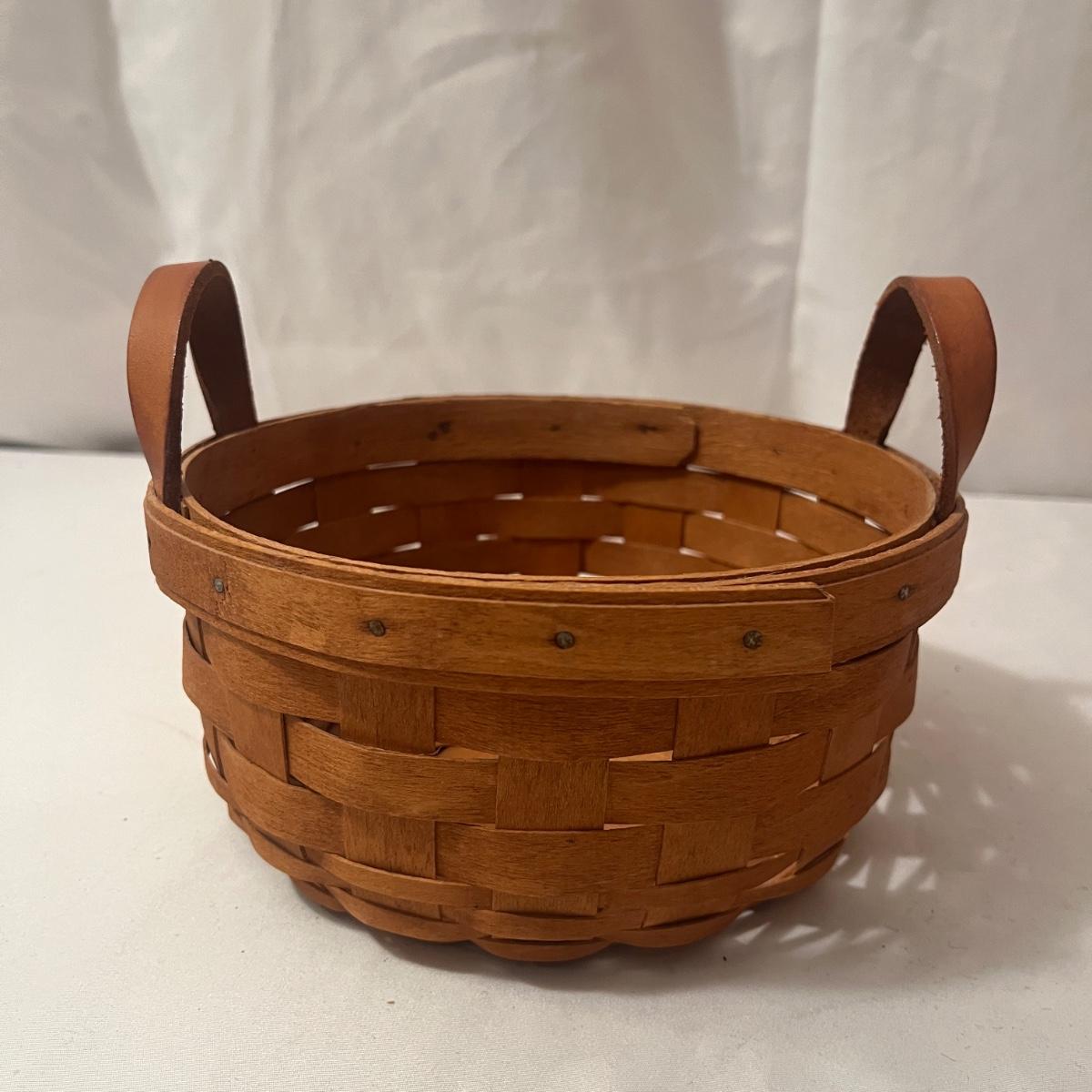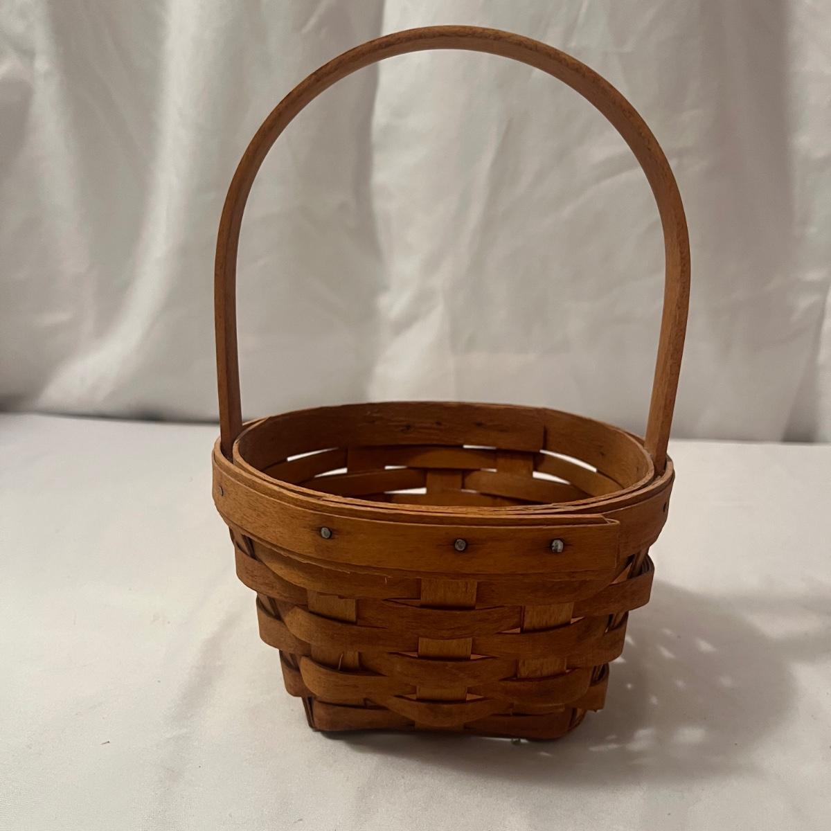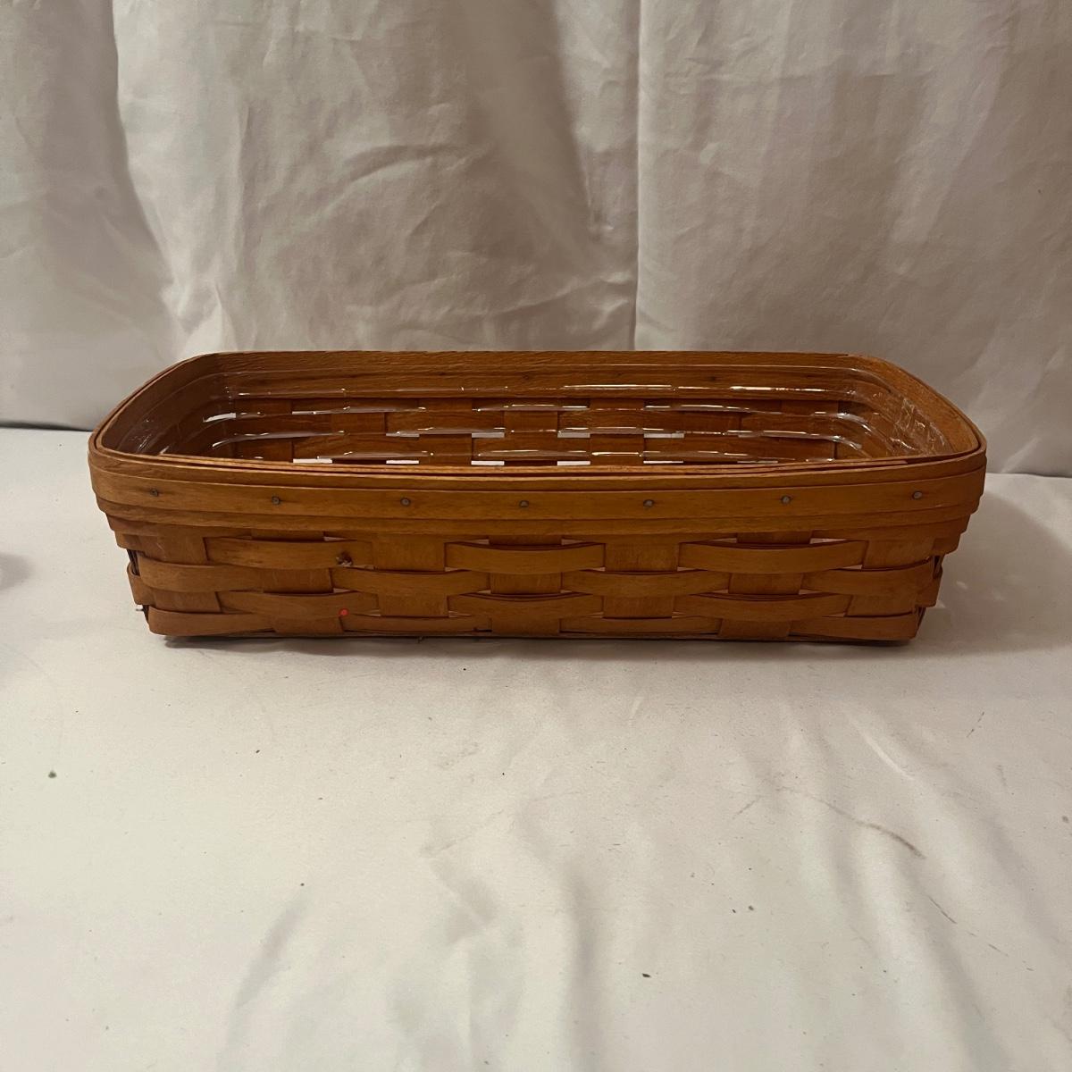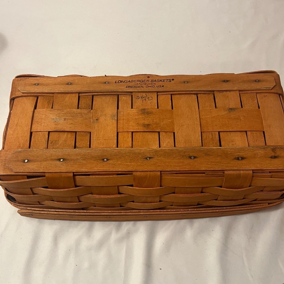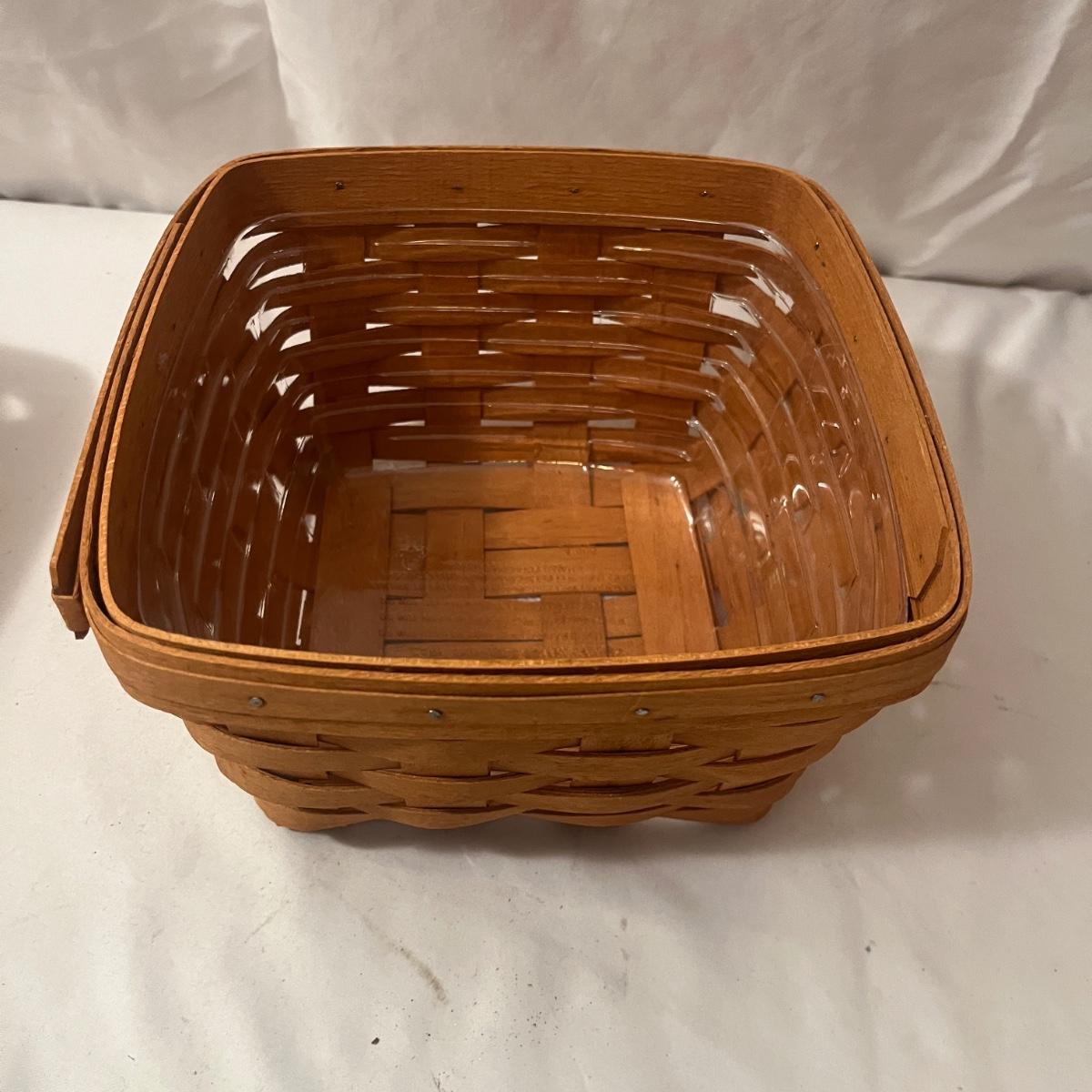 Lot includes five Longaberger hand woven baskets in a variety of sizes and shapes. Tallest basket measures 10” x 6” x 13”H including handle.