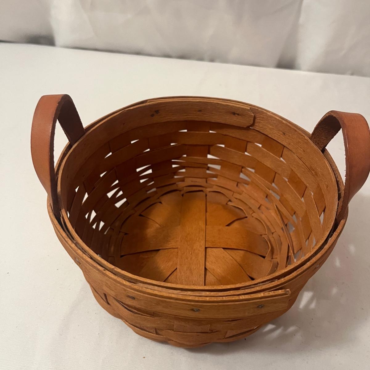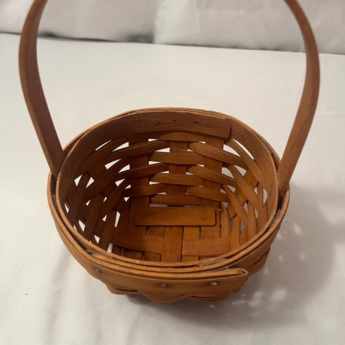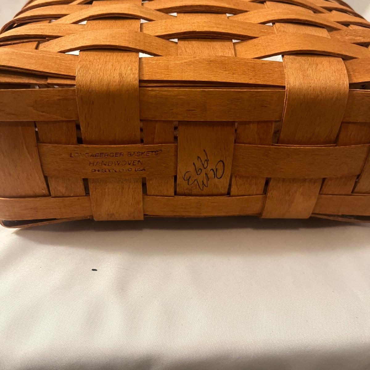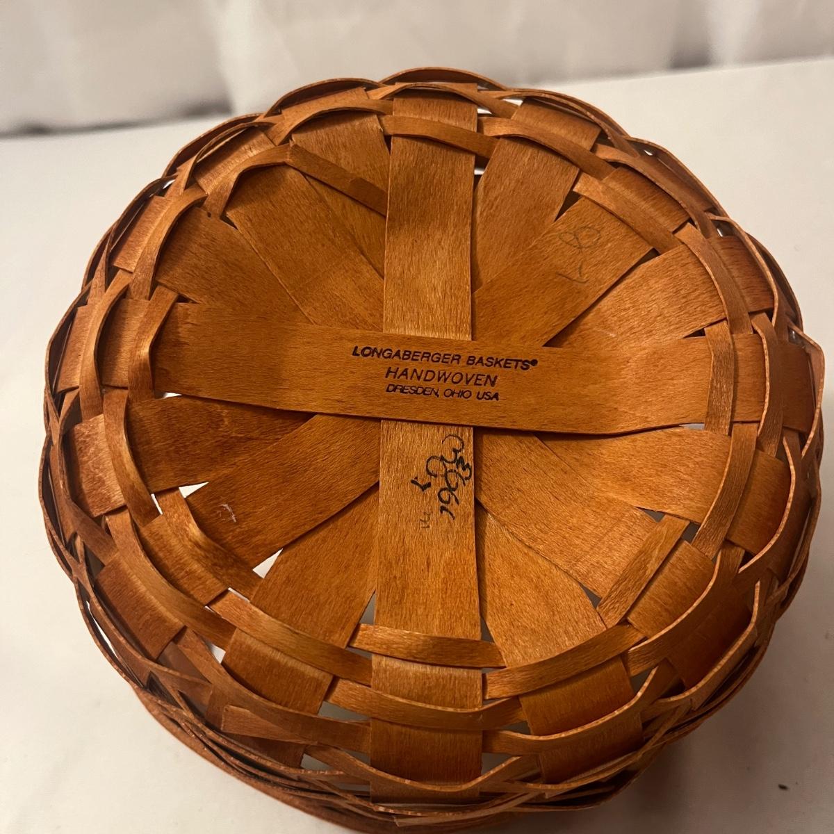 Lot includes five Longaberger hand woven baskets in a variety of sizes and shapes. Tallest basket measures 10” x 6” x 13”H including handle.
