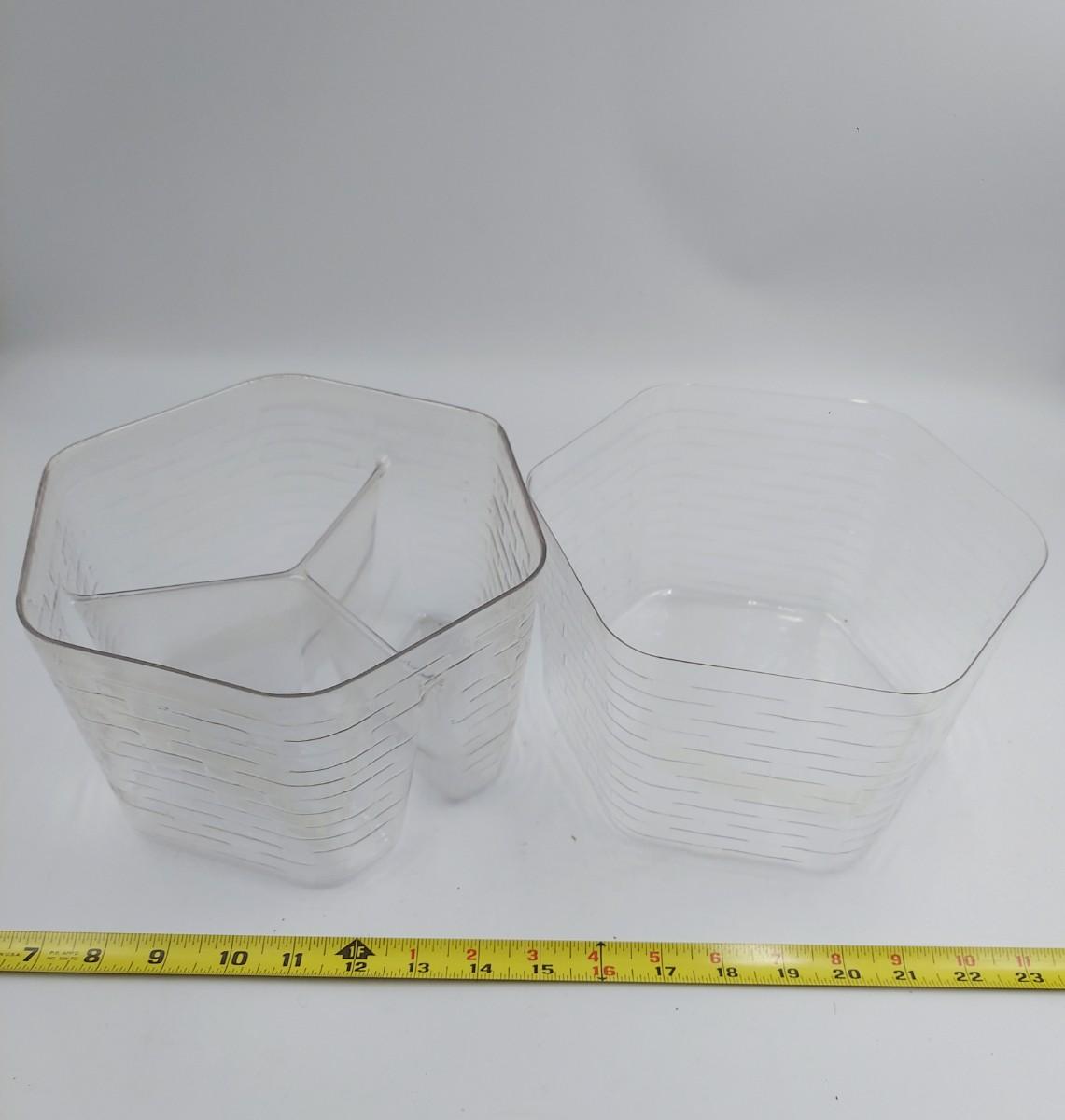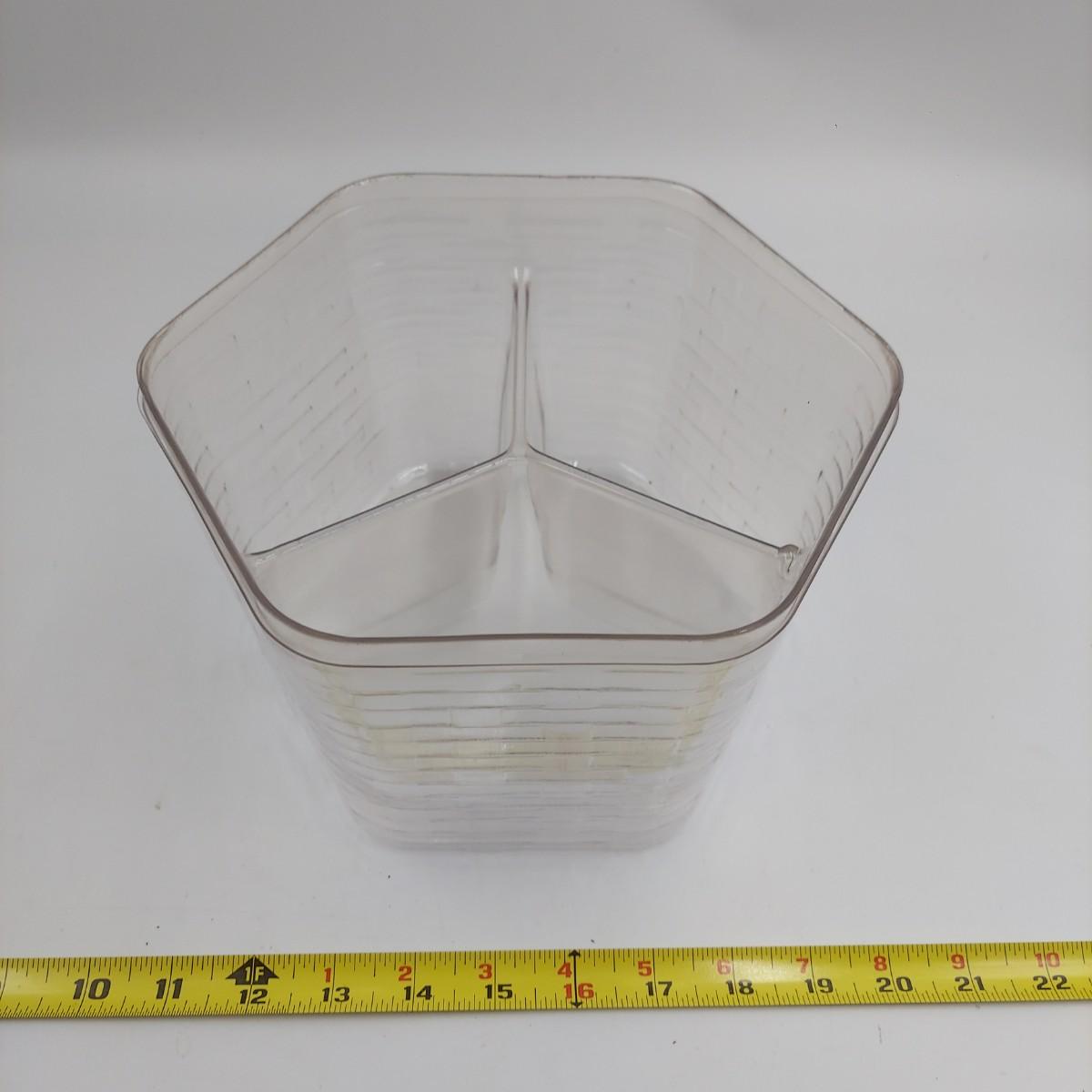 In overall good condition please see pictures for details- comes with 2 plastic insert, 1 cloth insert lid and basket