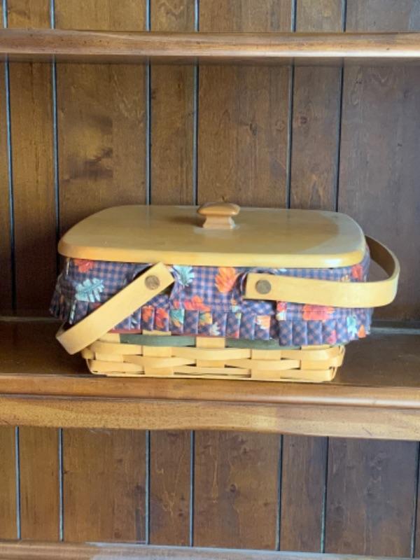 Longaberger Handled Basket with Lid and liner Lot 2353