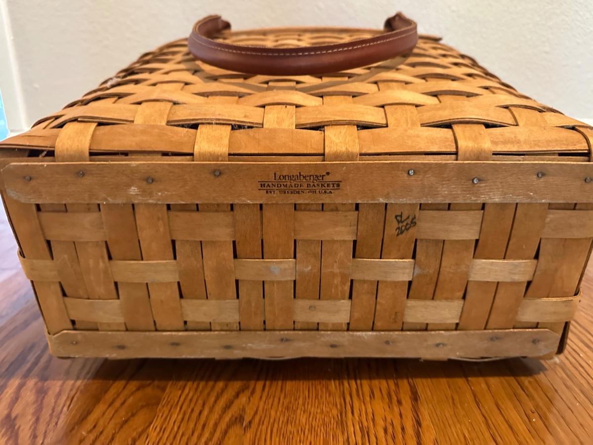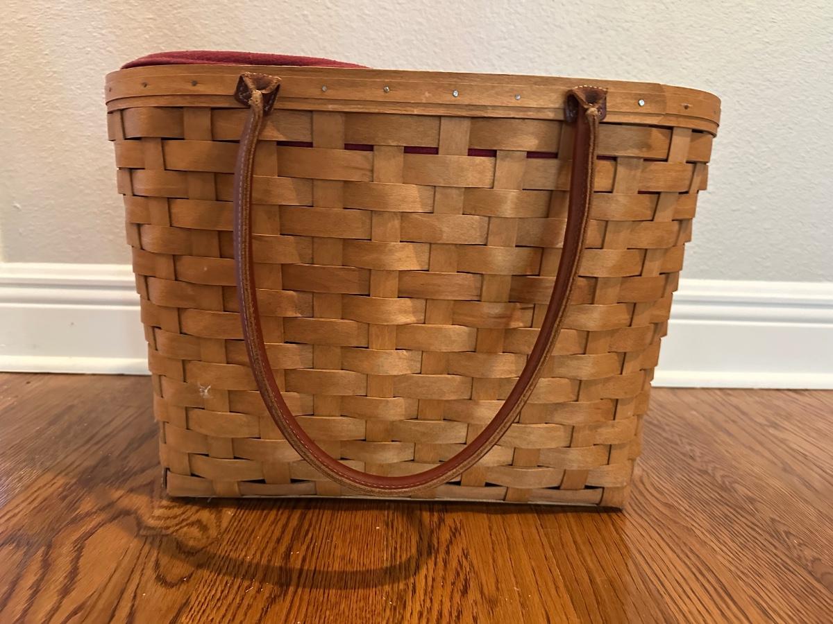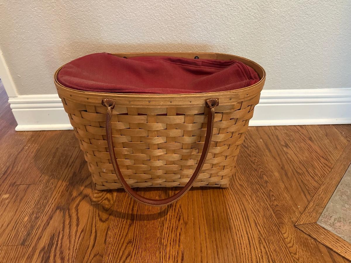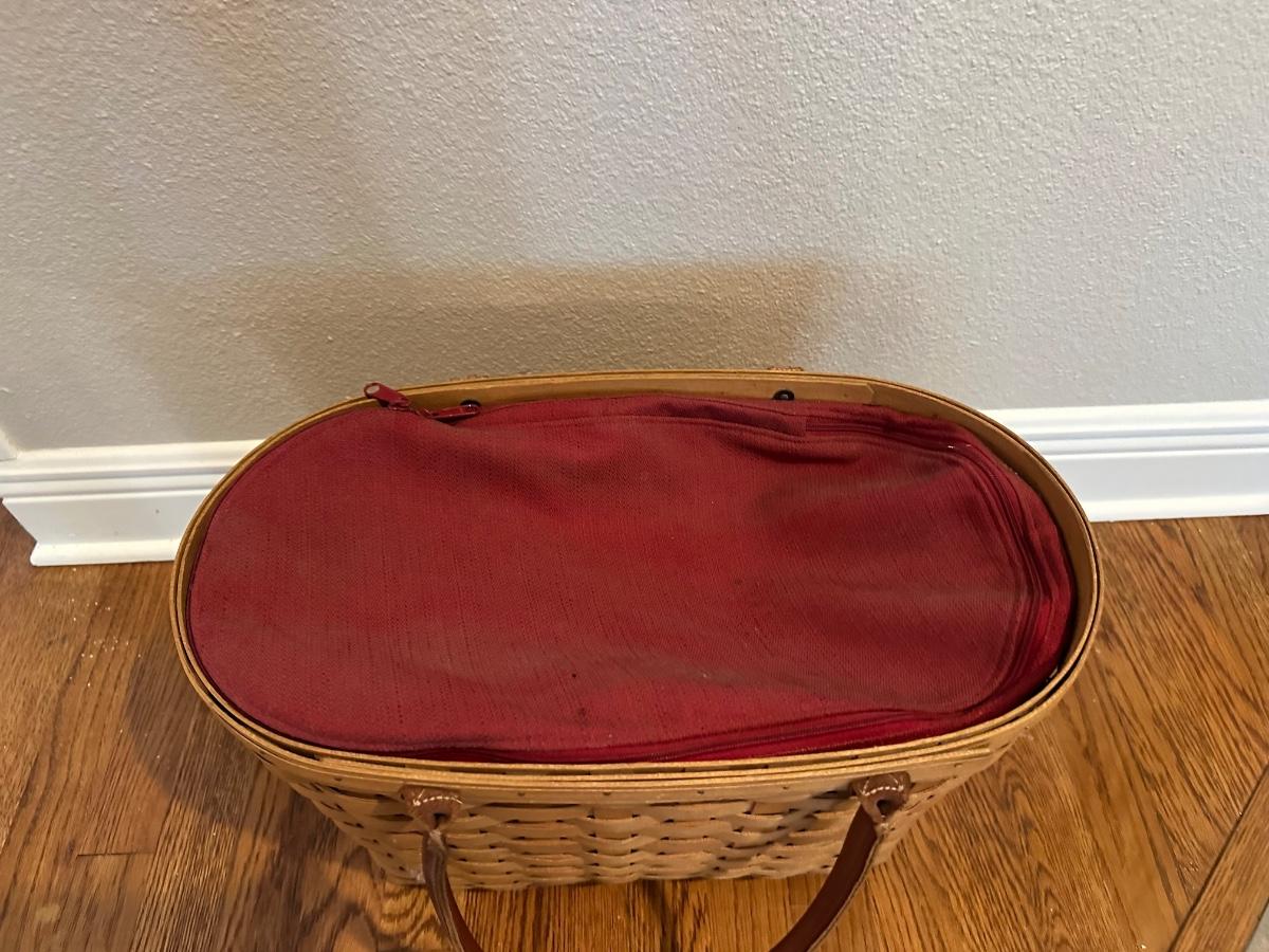 Longaberger Handwoven Bag with Leather Handles And zippered liner.