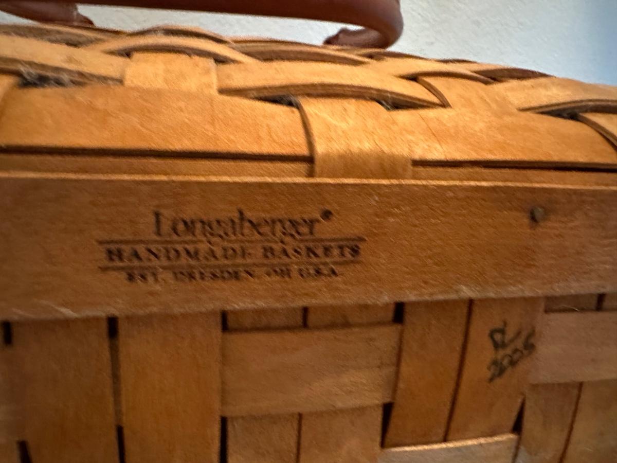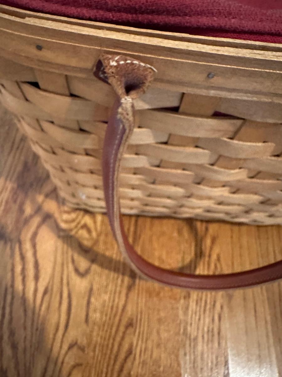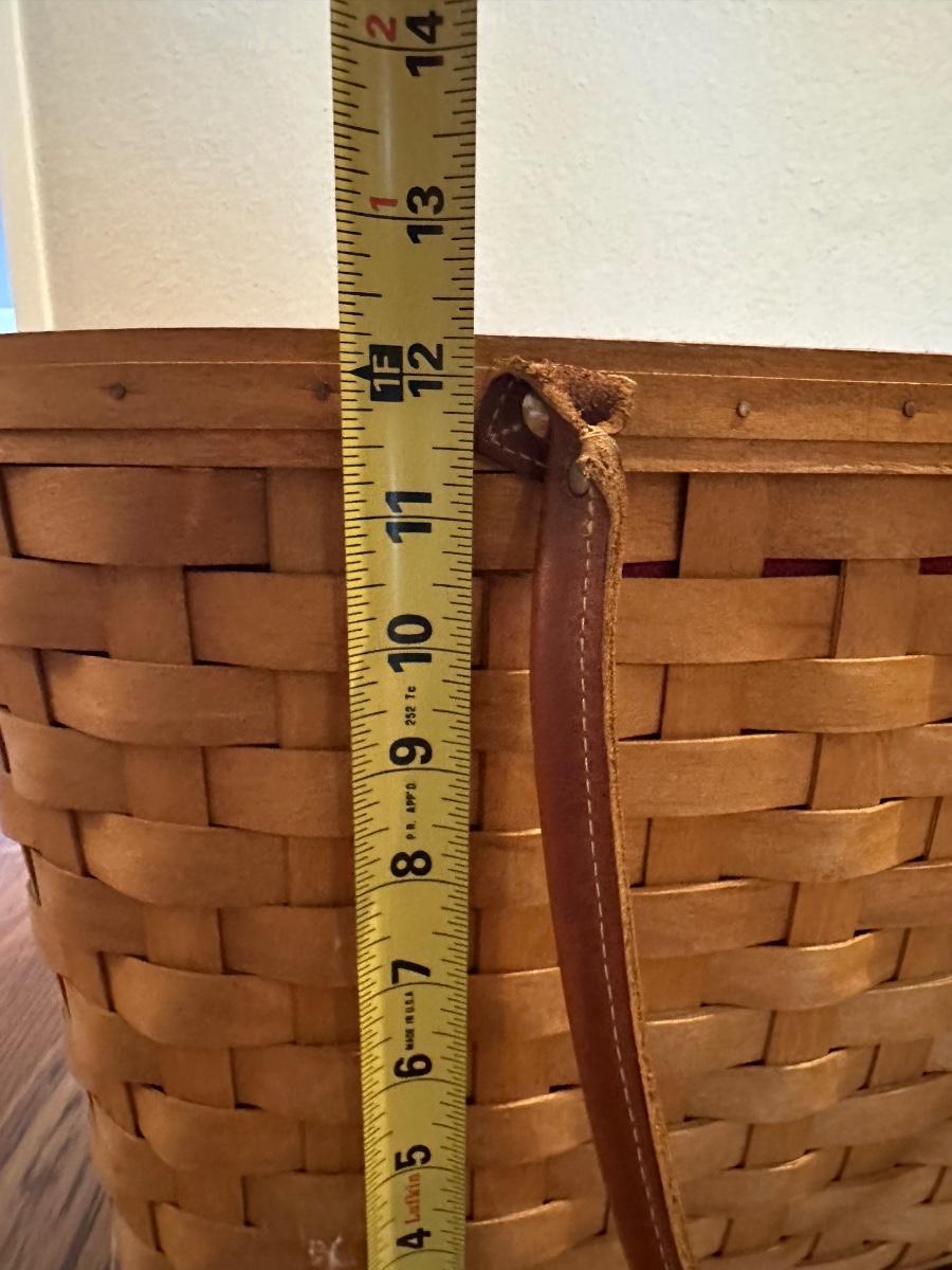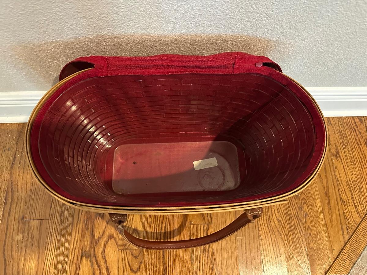 Longaberger Handwoven Bag with Leather Handles And zippered liner.