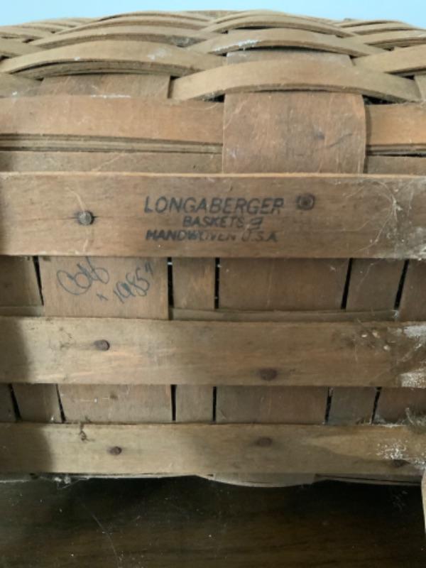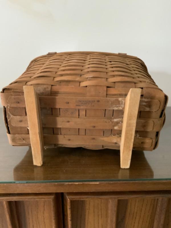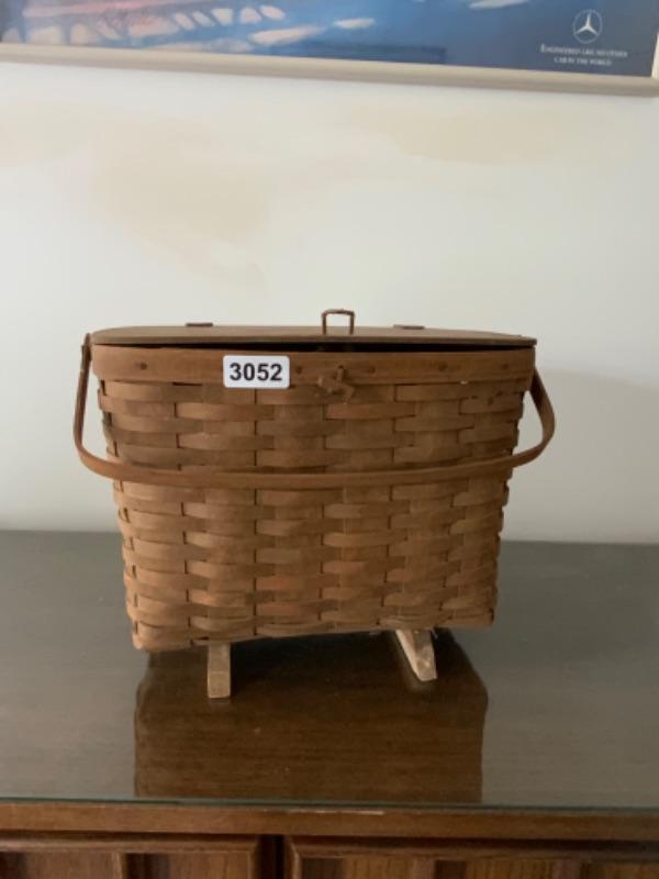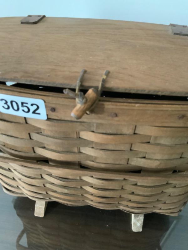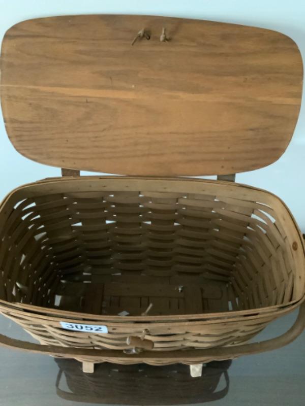 Longaberger large handled basket with hinged lid and feet lot 3052