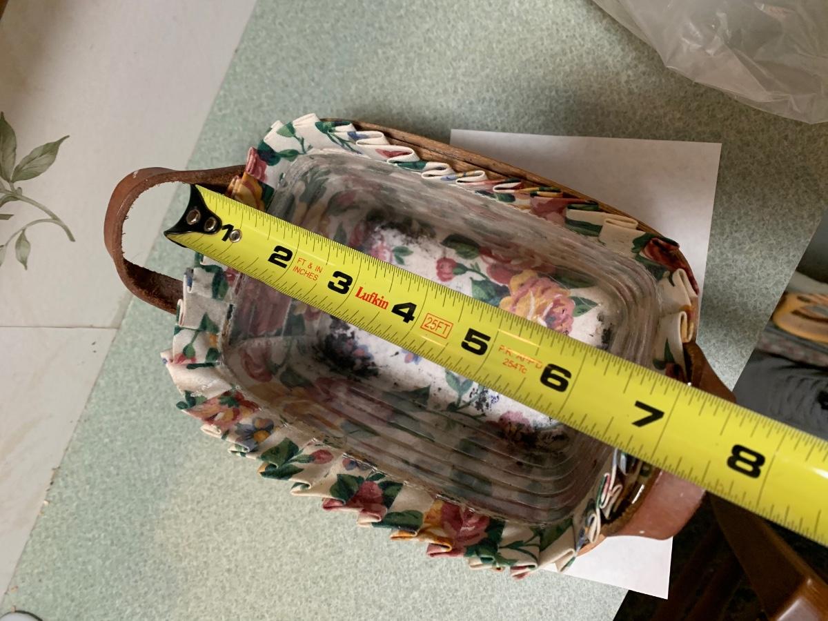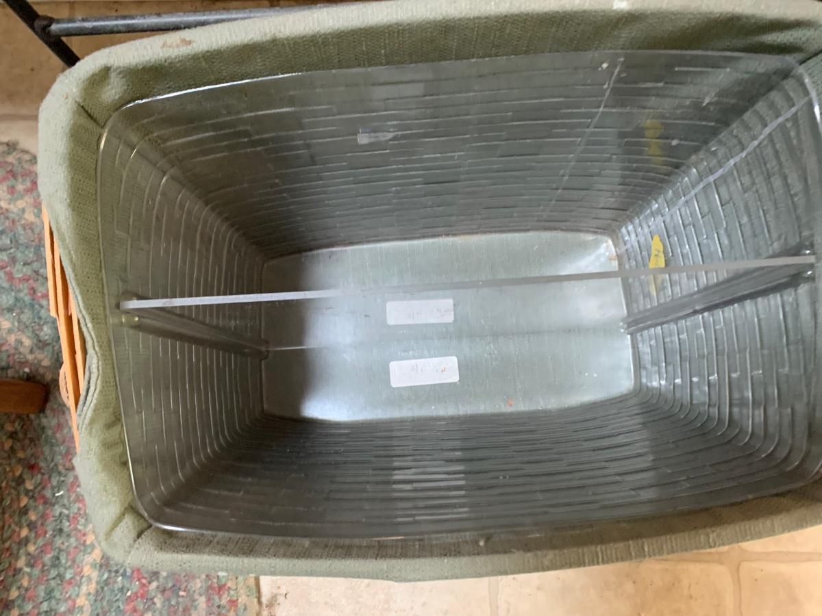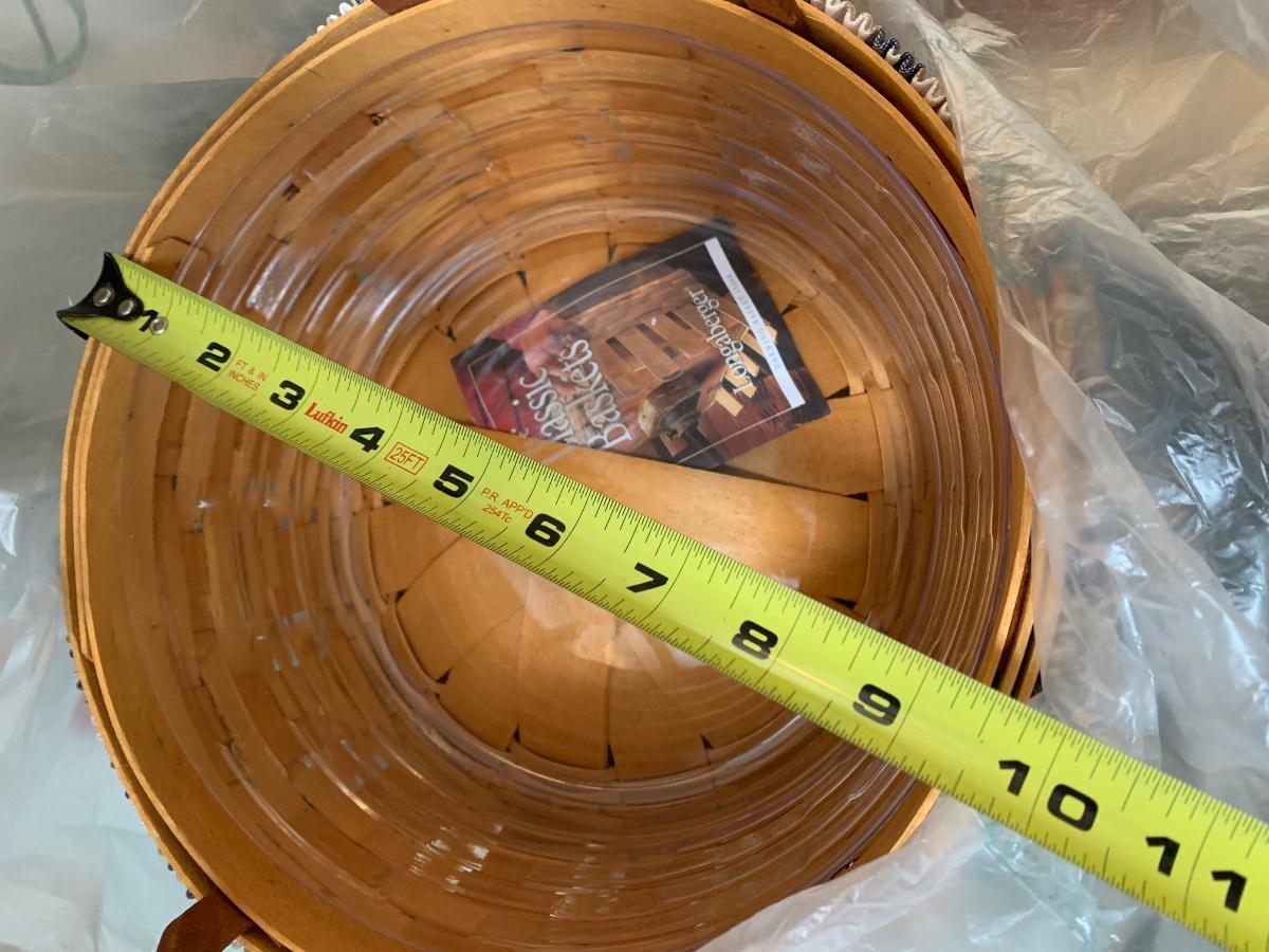 See many photos for content, condition and dimensions. Round basket on bag is brand new.