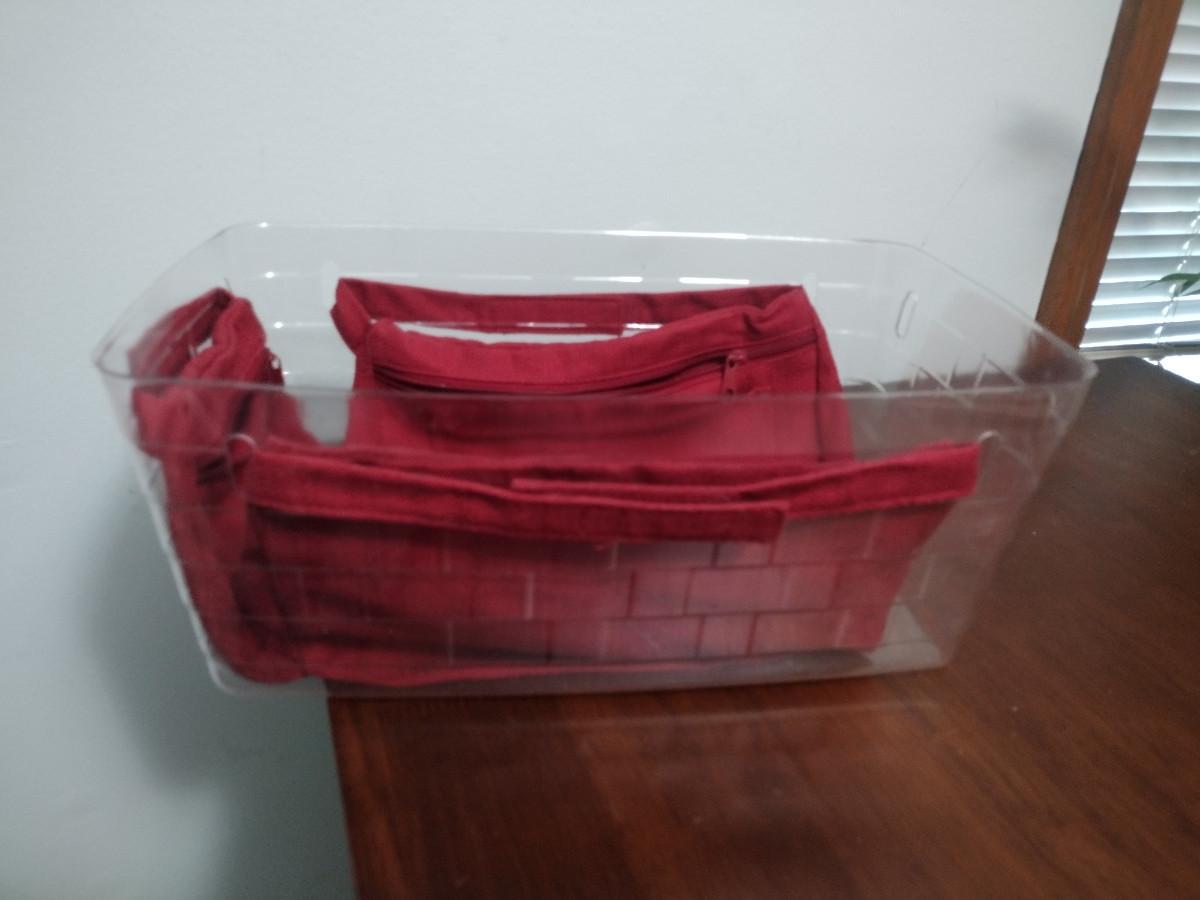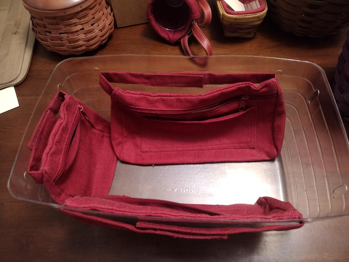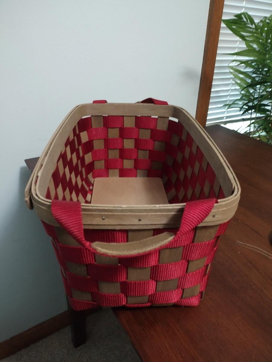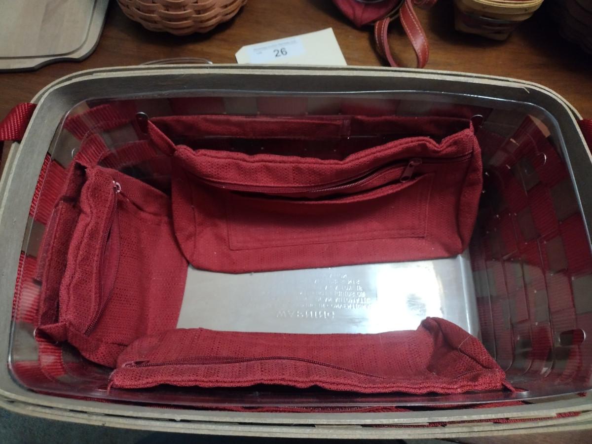Red to go Longaberger medium side handle tote w/Lid Includes liner and plastic protector.