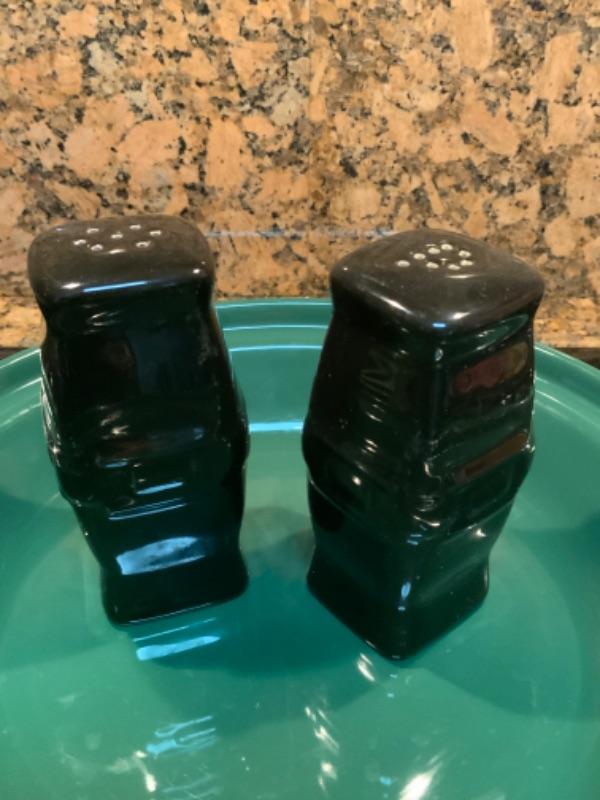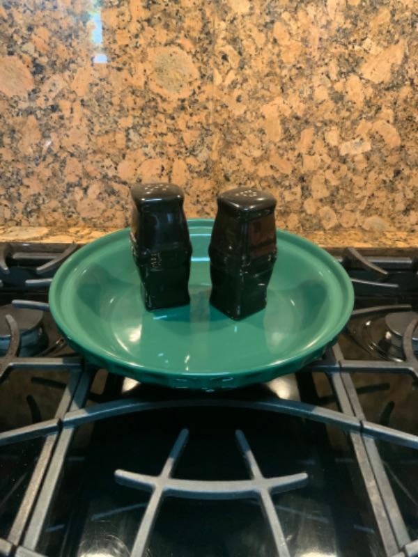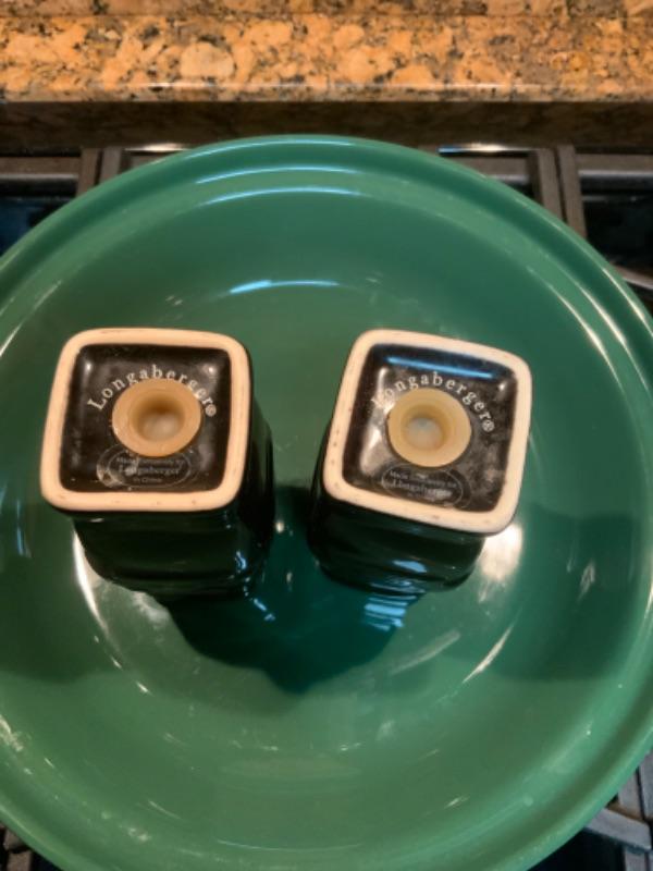 Longaberger Woven Traditions Ivy Green Pie Plate and ebony salt and pepper shaker Lot 2406