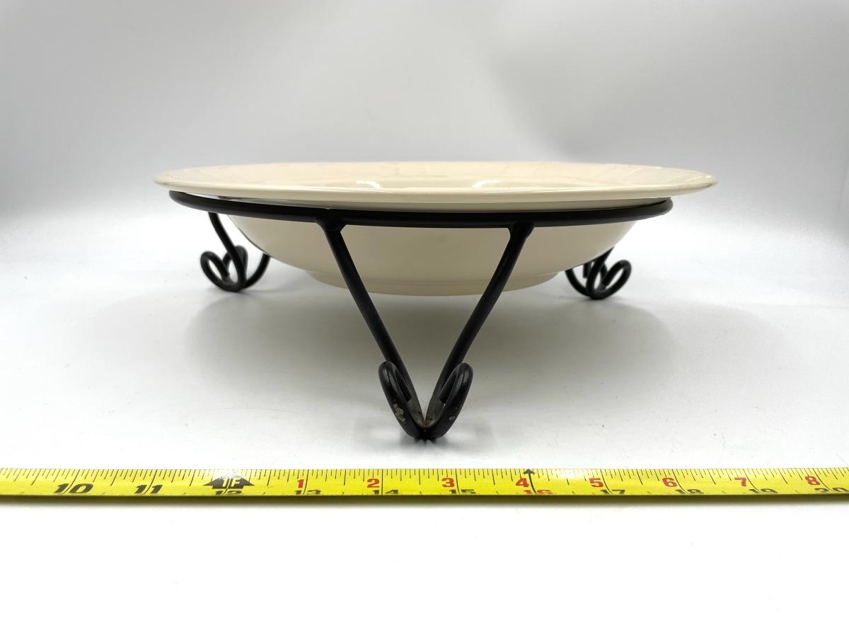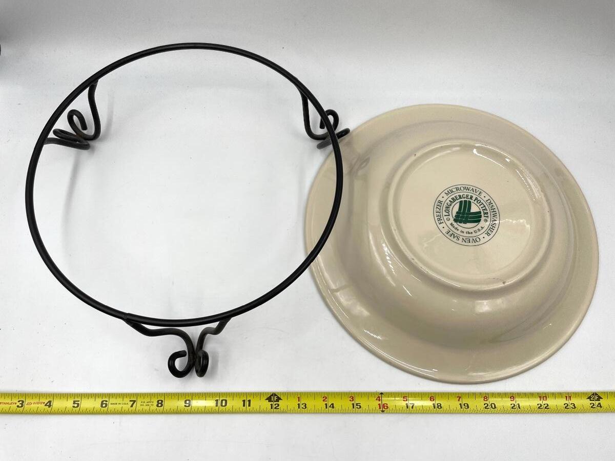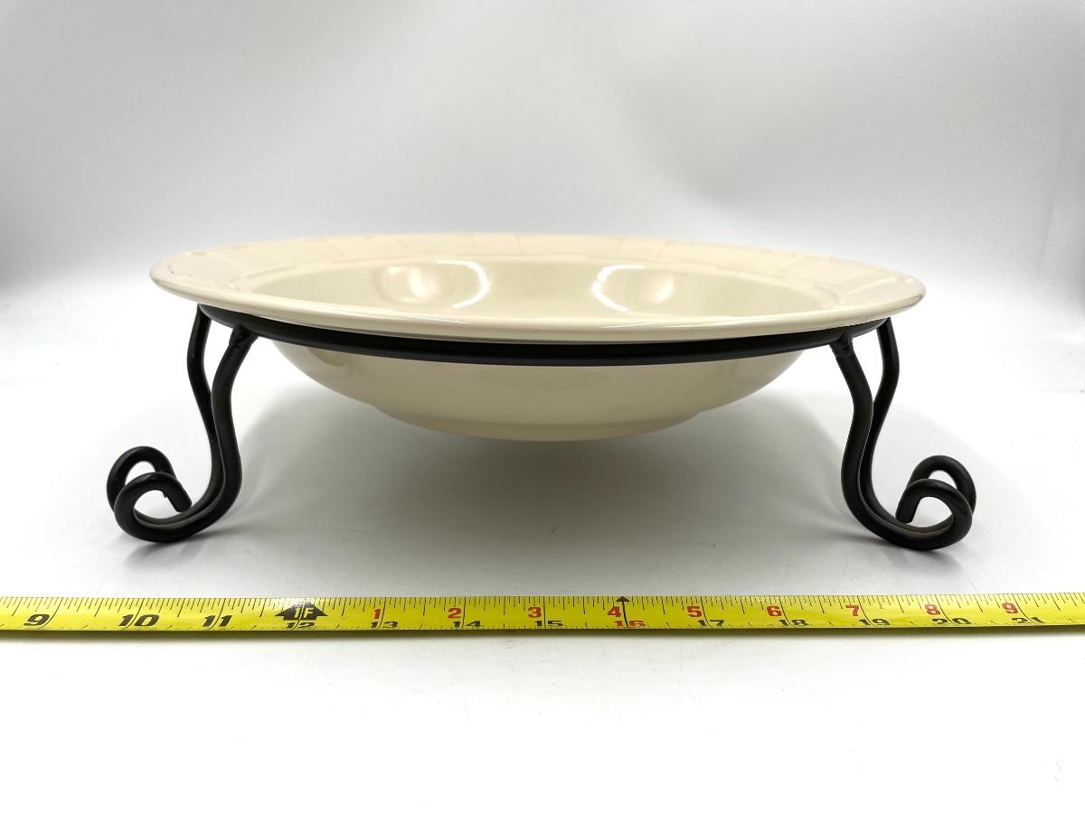 LONGABERGER POTTERY LARGE IVORY BOWL W/WROUGHT IRON STAND