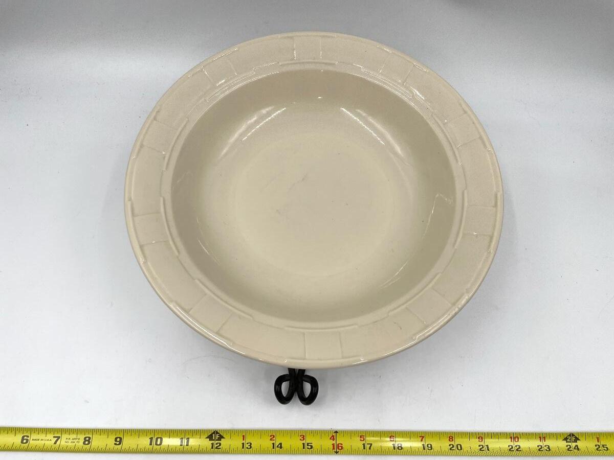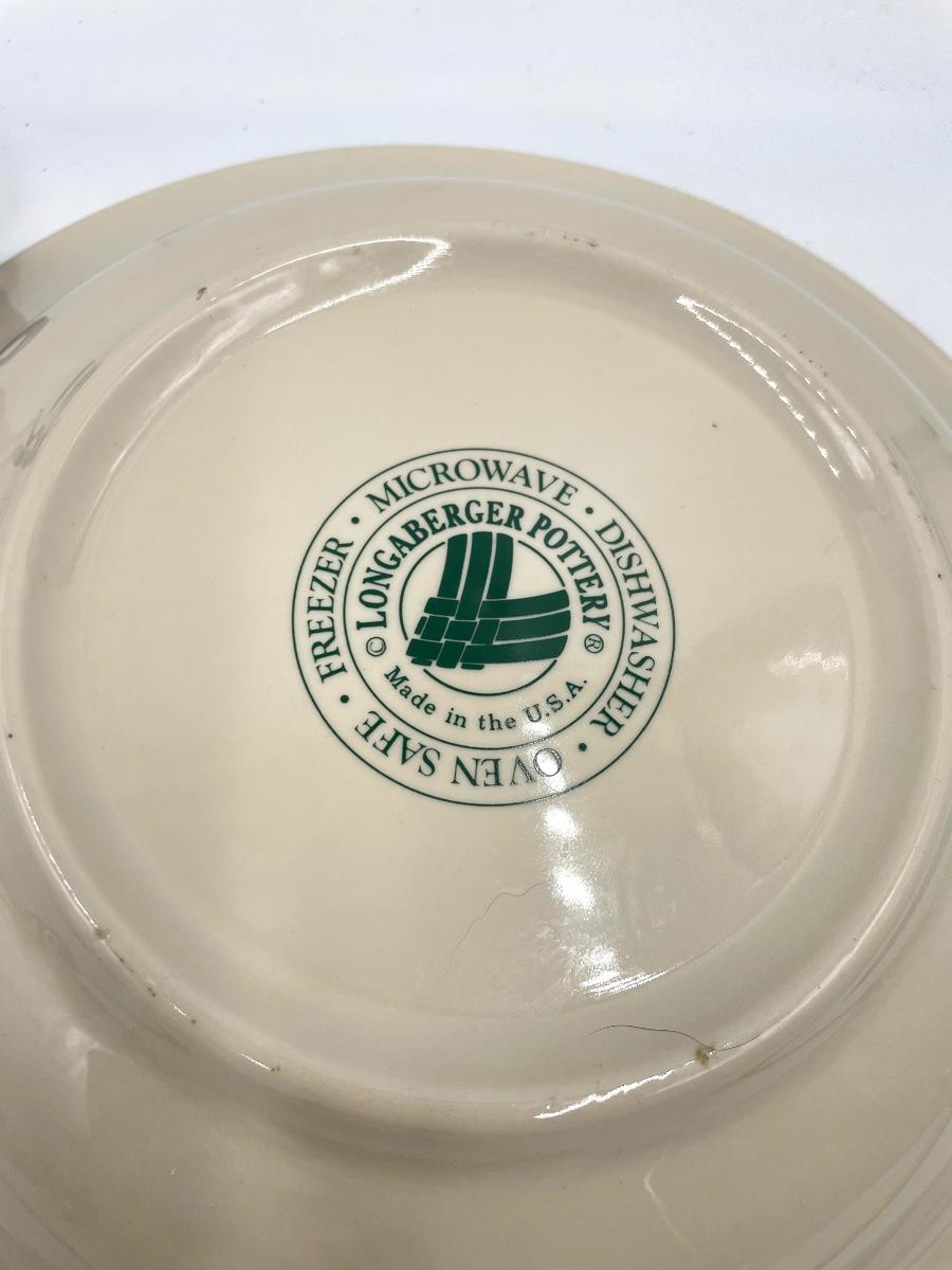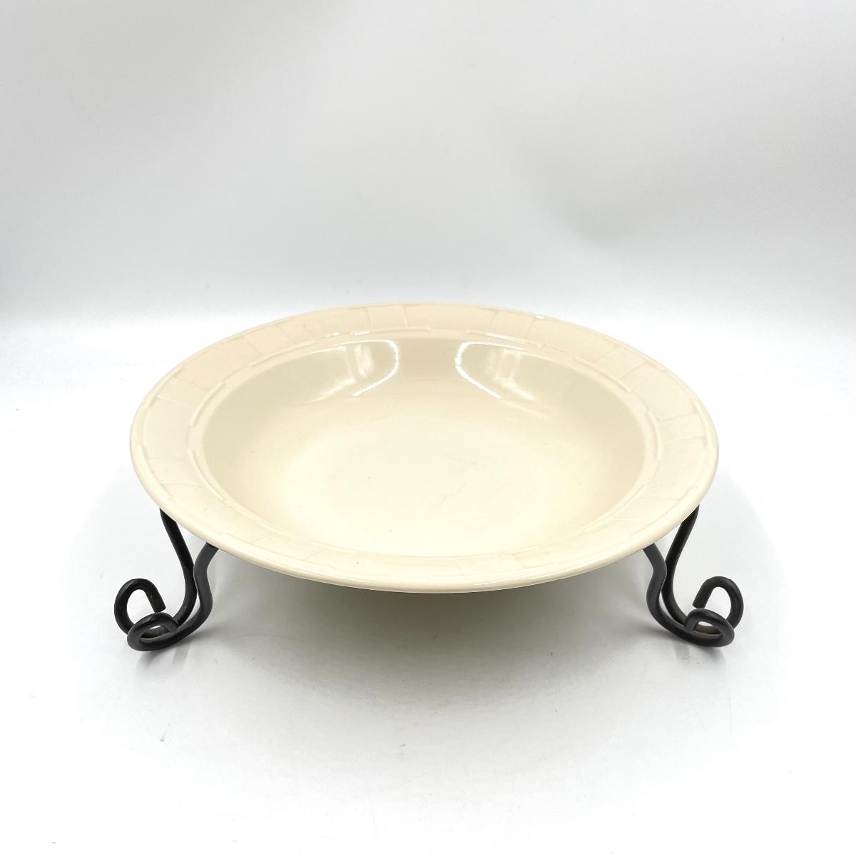 LONGABERGER POTTERY LARGE IVORY BOWL W/WROUGHT IRON STAND