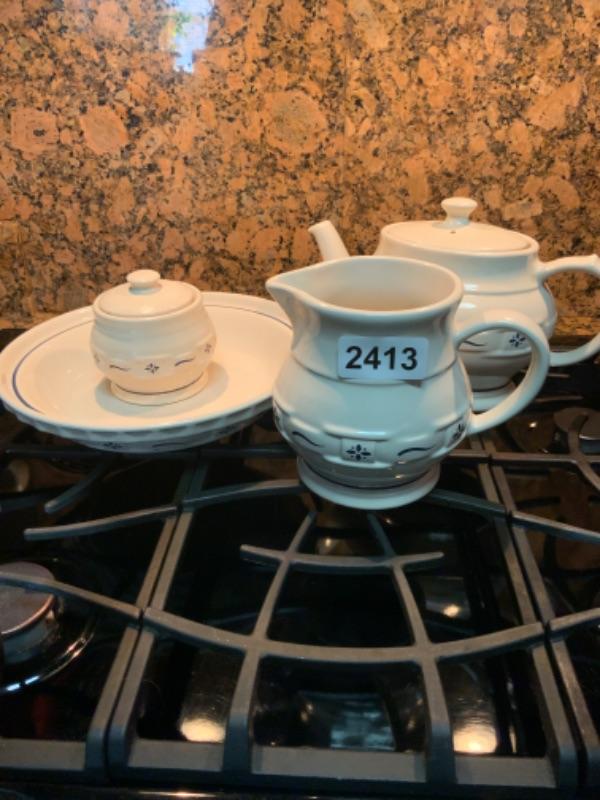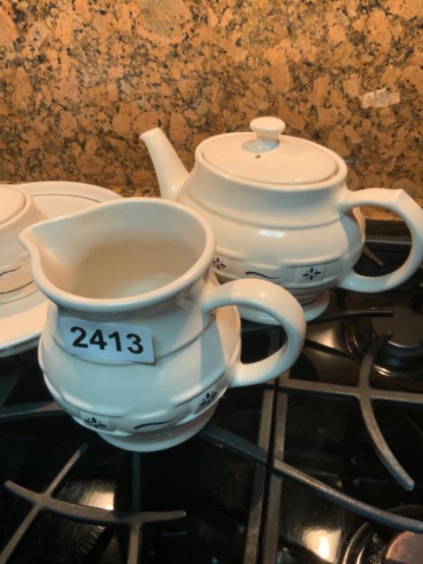 Longaberger Woven Traditions Classic Blue Pottery Set Lot 2413