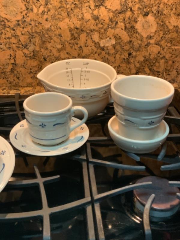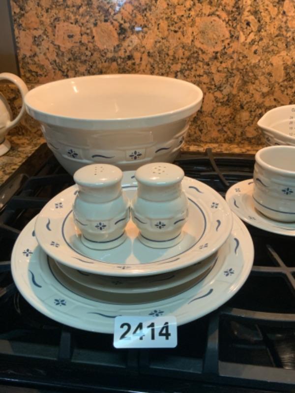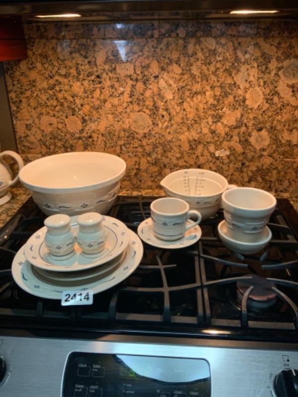 Longaberger Woven Traditions Classic Blue Pottery Set Lot 2414