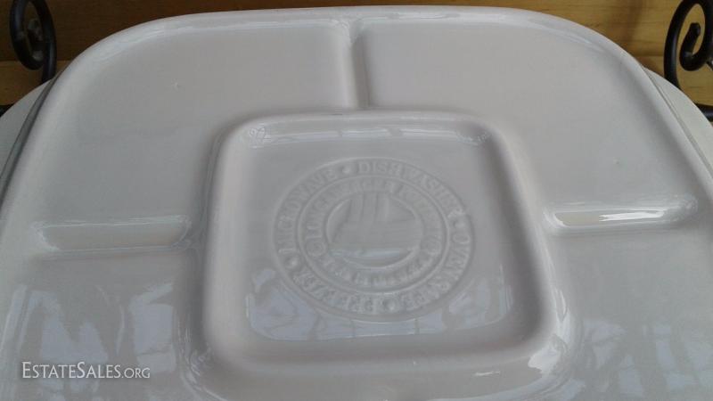 Just in time for the holidays! This Longaberger four-section relish serving tray comes with a Wrought Iron Buffet Stand. Excellent condition.