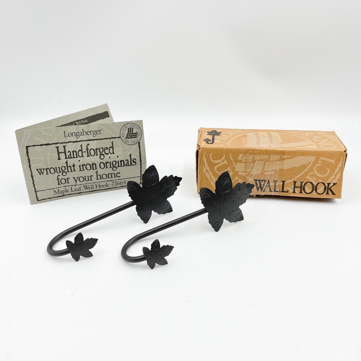 LONGABERGER WROUGHT IRON MAPLE LEAF WALL HOOKS SET OF 2