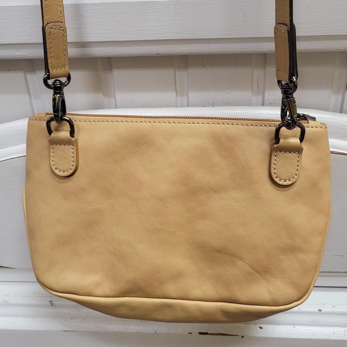 Unused, small camel-colored crossbody purse by Longchamp. Adjustable crossbody strap. Longchamp horse signature satin lining. Measures 10" wide x 6" tall x 2.5" deep. I believe it's made of leather.