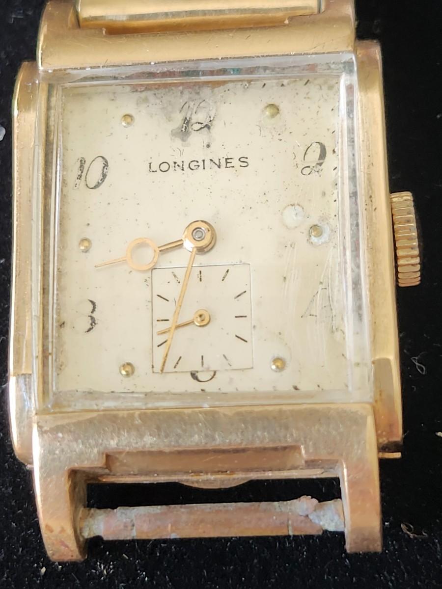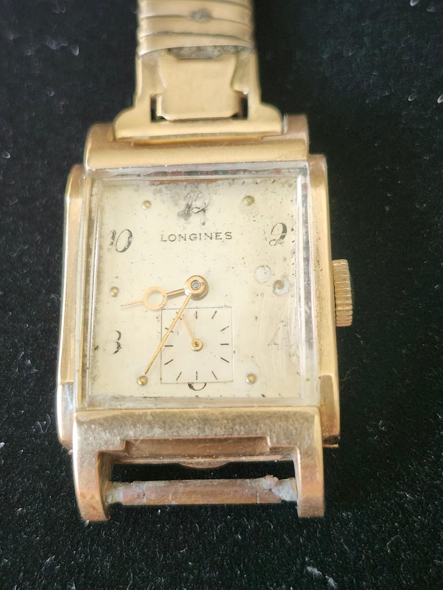 It obviously has some wear and needs a good cleaning, The watchband attaches via clamps with a lever, which is working smoothly.
