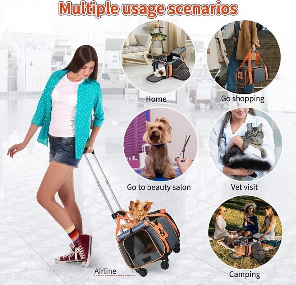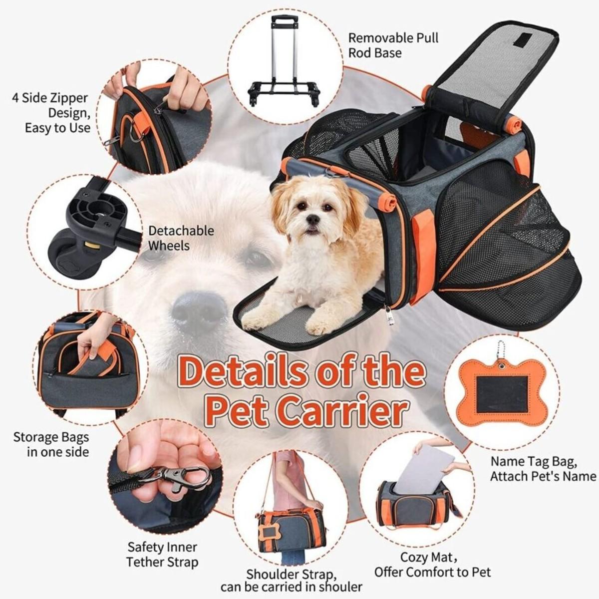 Loobani Airline Approved Expandable Gray Pet Carrier w/ Wheels (New in Box)