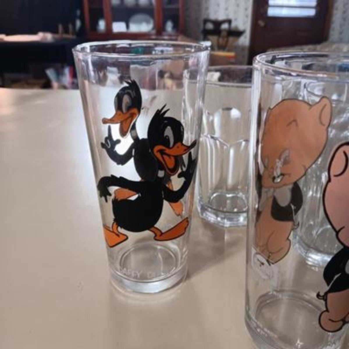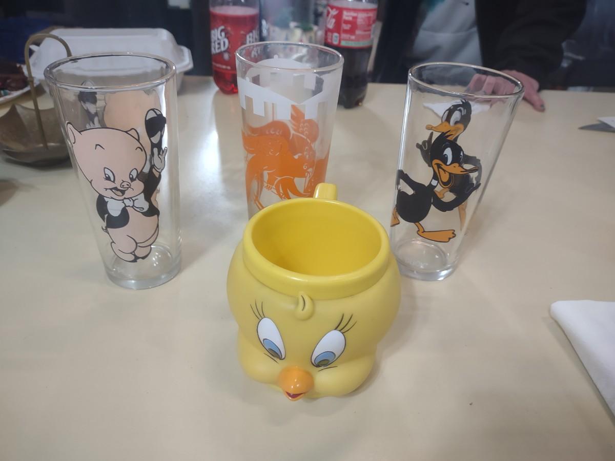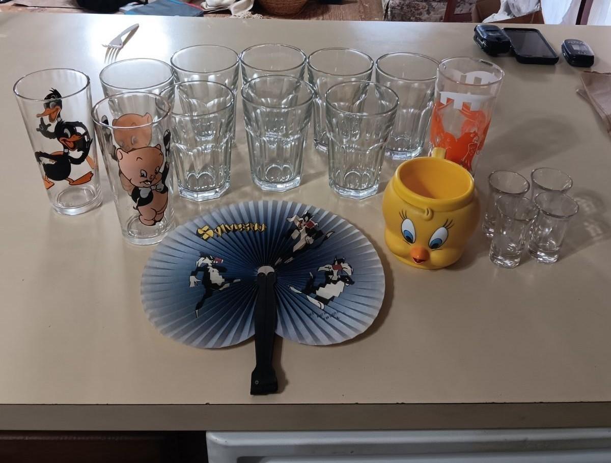 LOONEY TOONS GLASSES, TWEETY BIRD MUG, FAN AND OTHER GLASSWARE