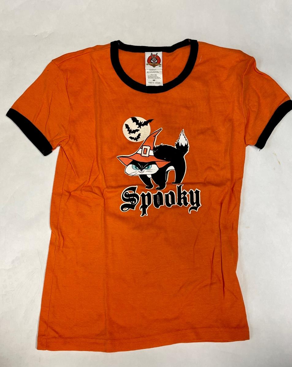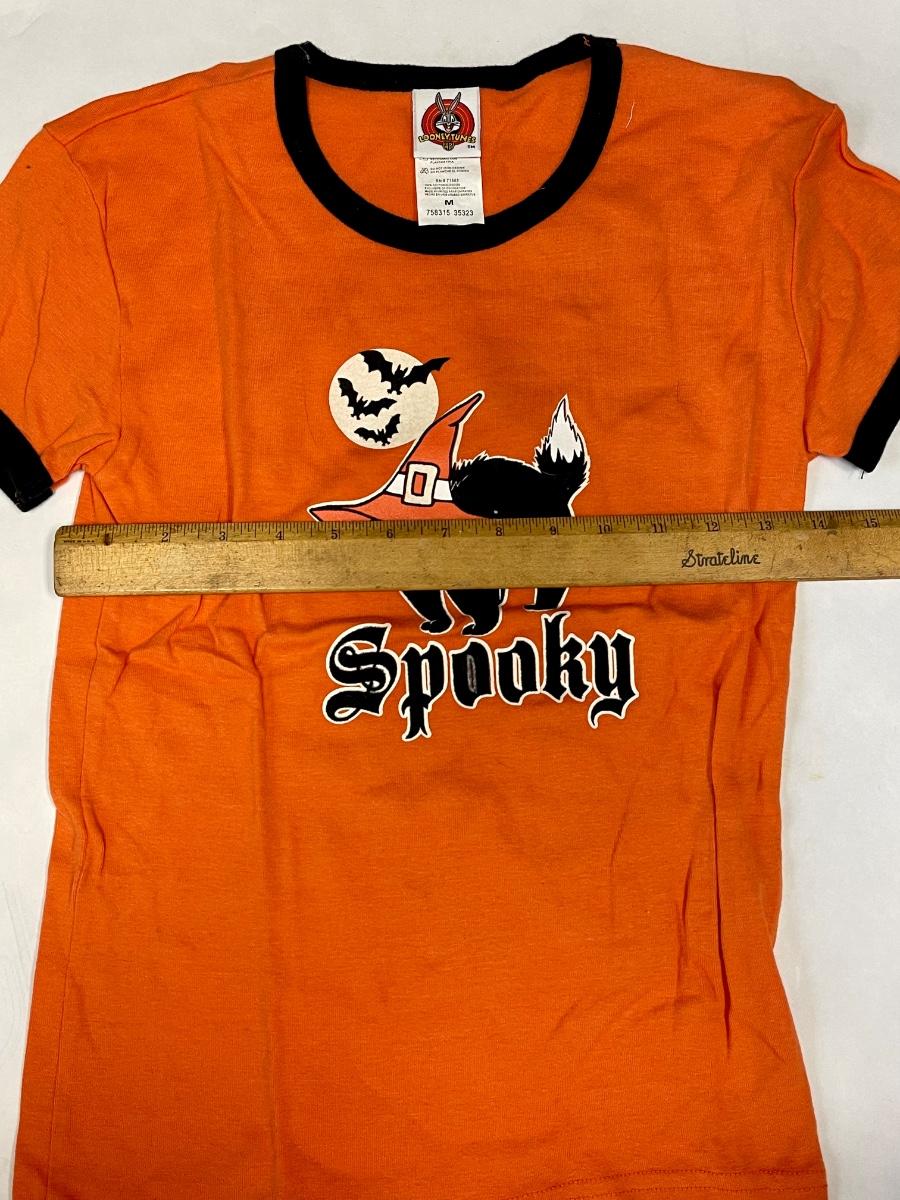 Looney Toons Halloween Orange & Black Spooky Tshirt. Ladies Medium.