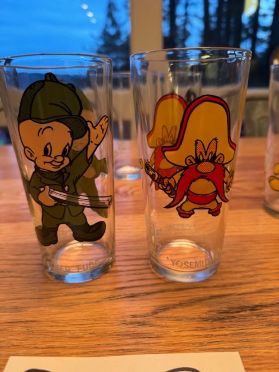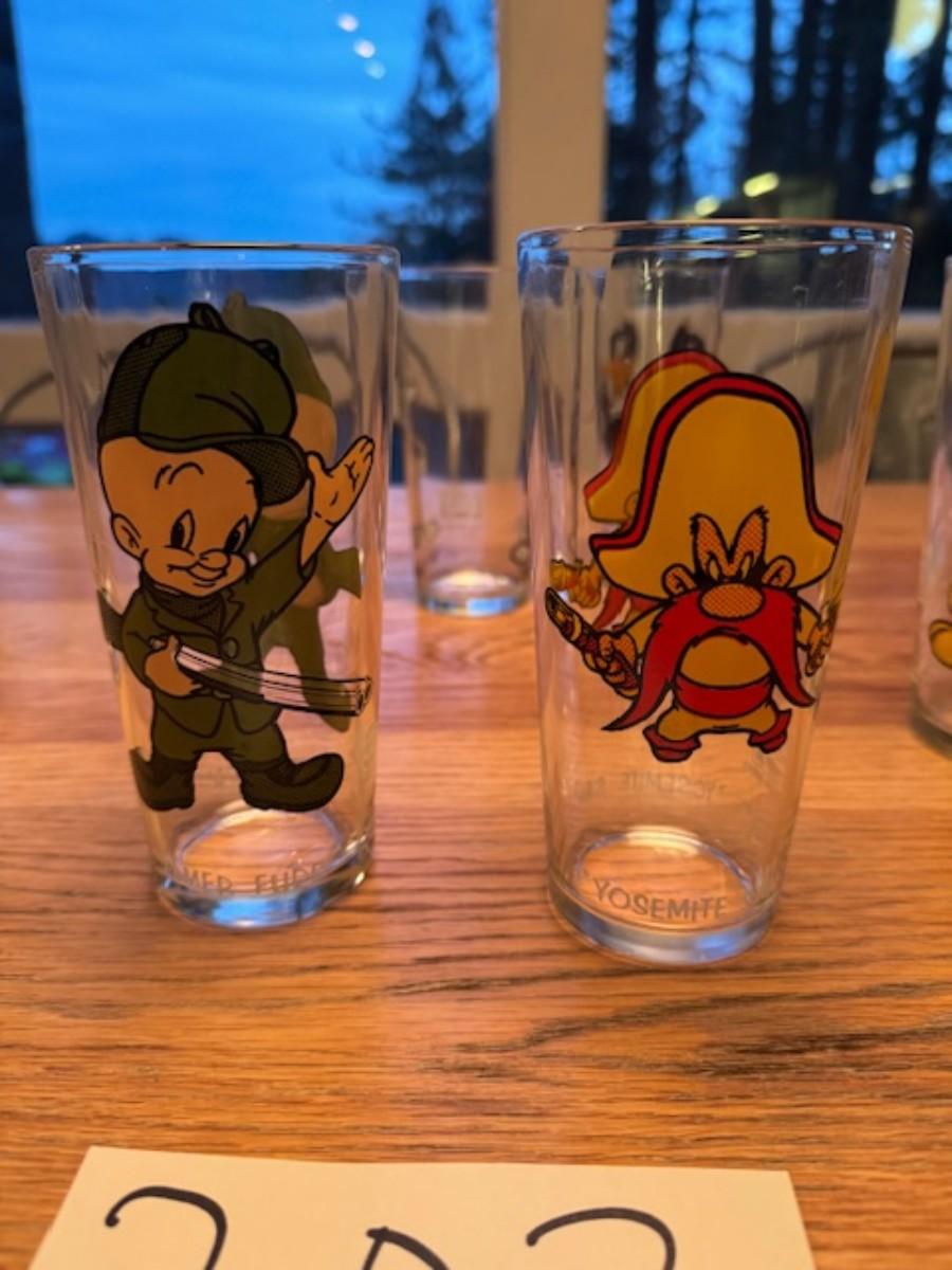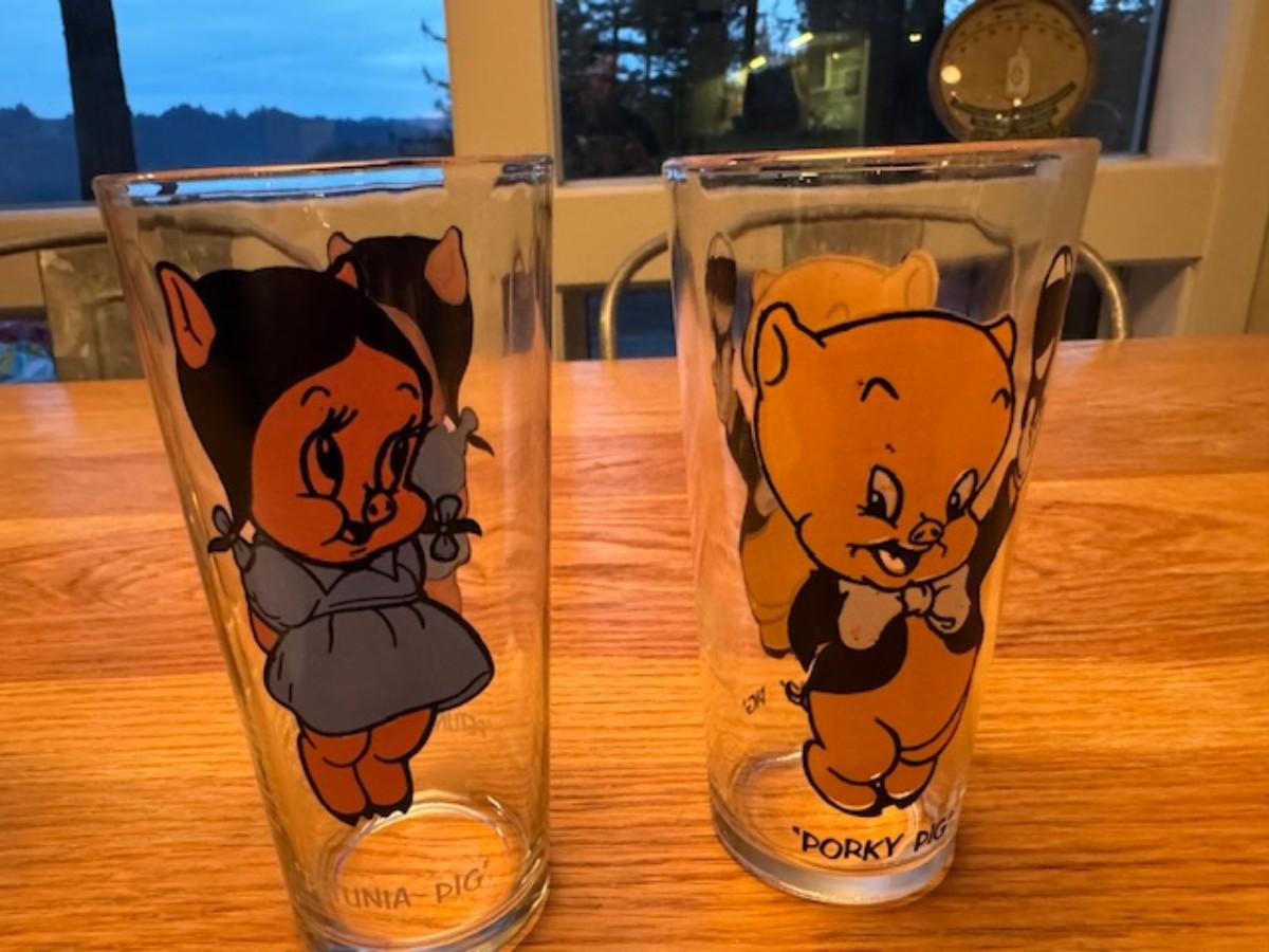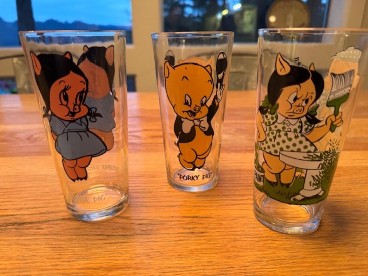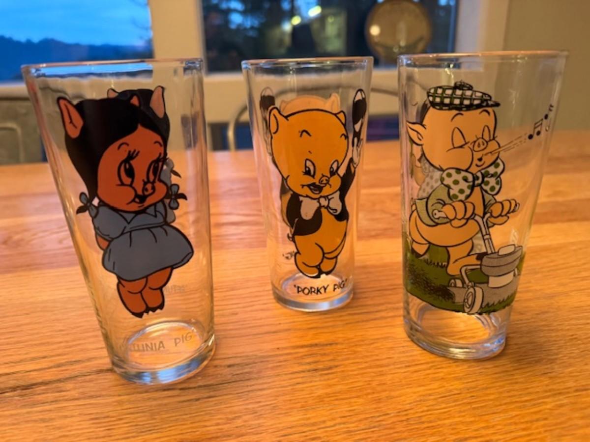 All are in very good condition. All dated 1973 except for Petunia and Porkey pig together glass dated 1976.