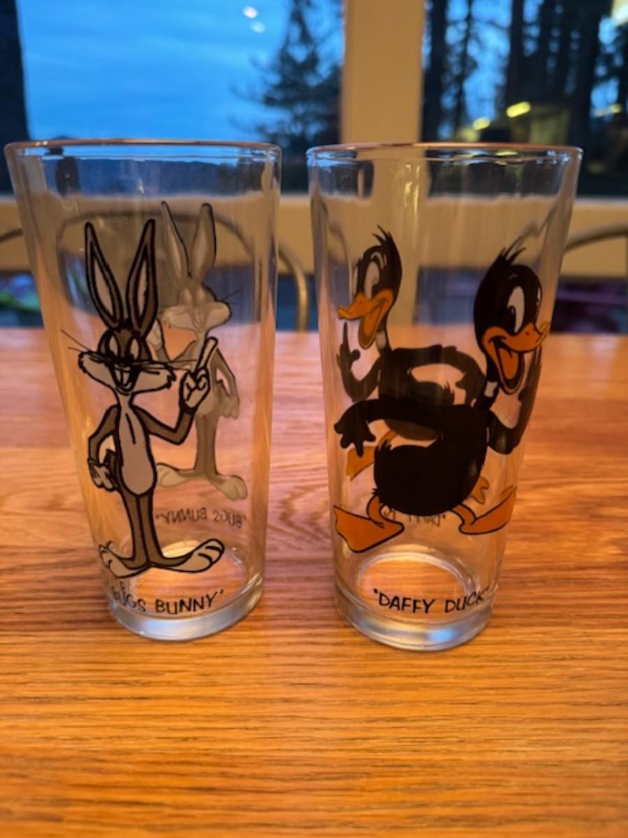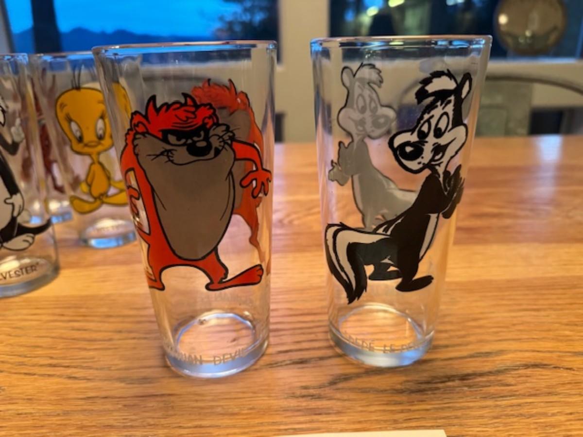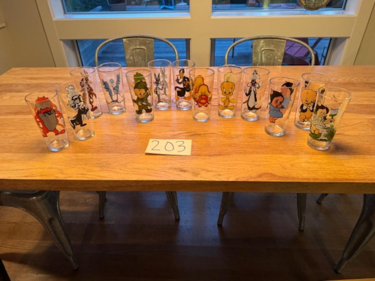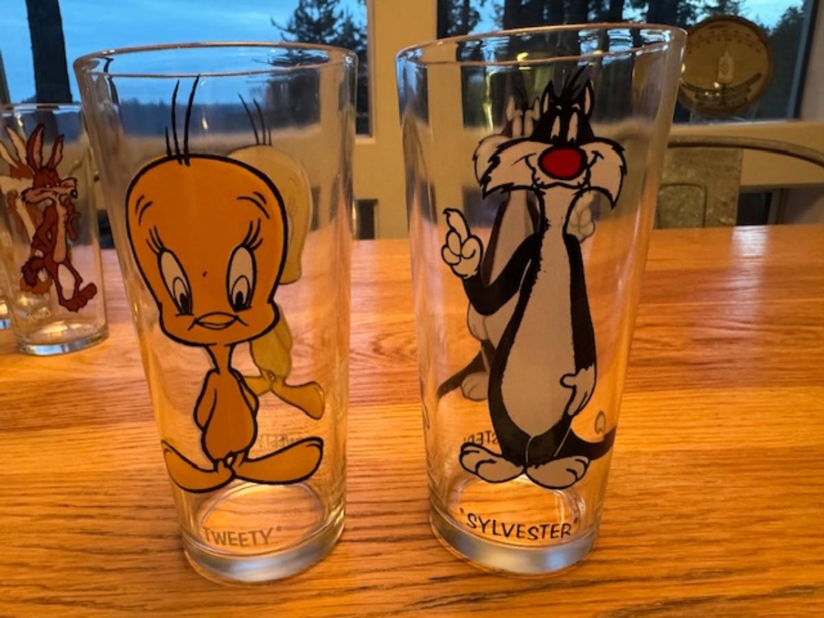 All are in very good condition. All dated 1973 except for Petunia and Porkey pig together glass dated 1976.