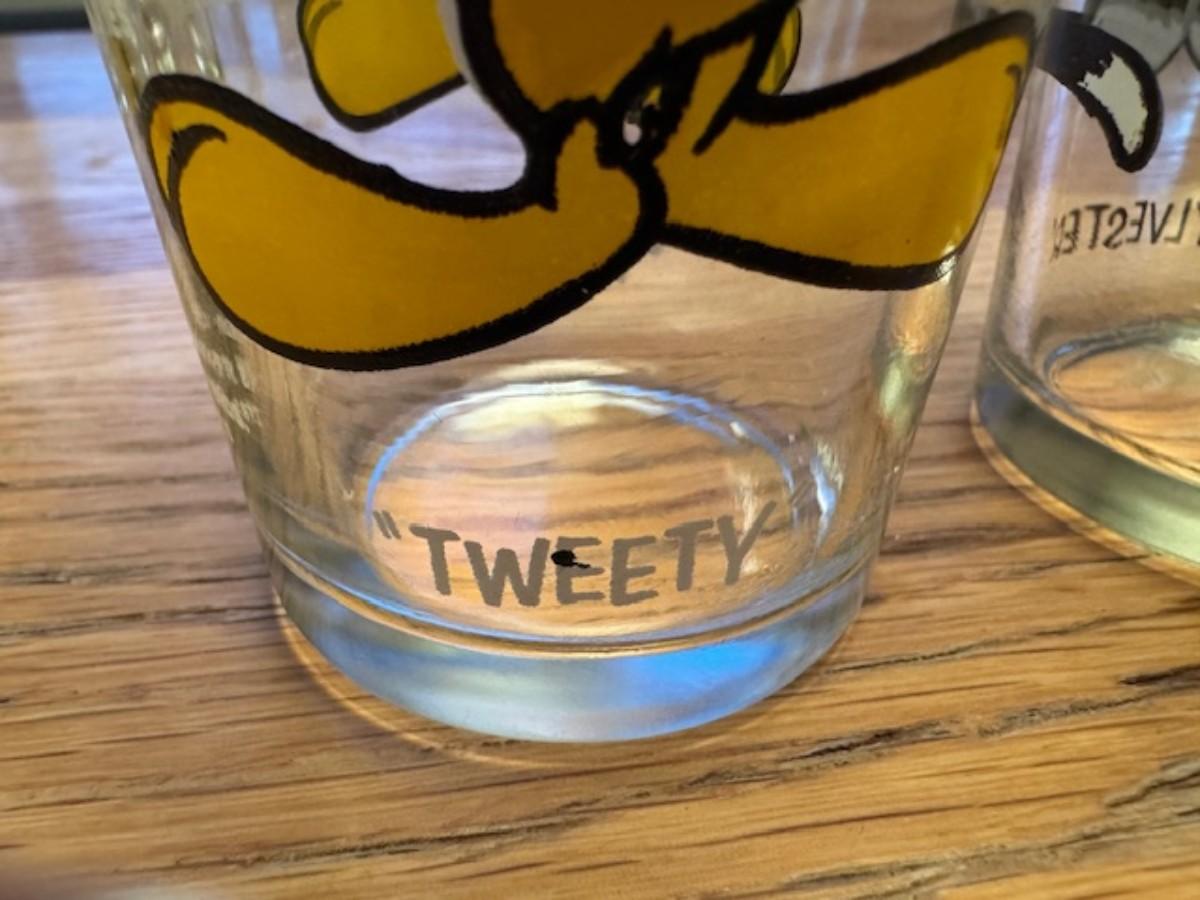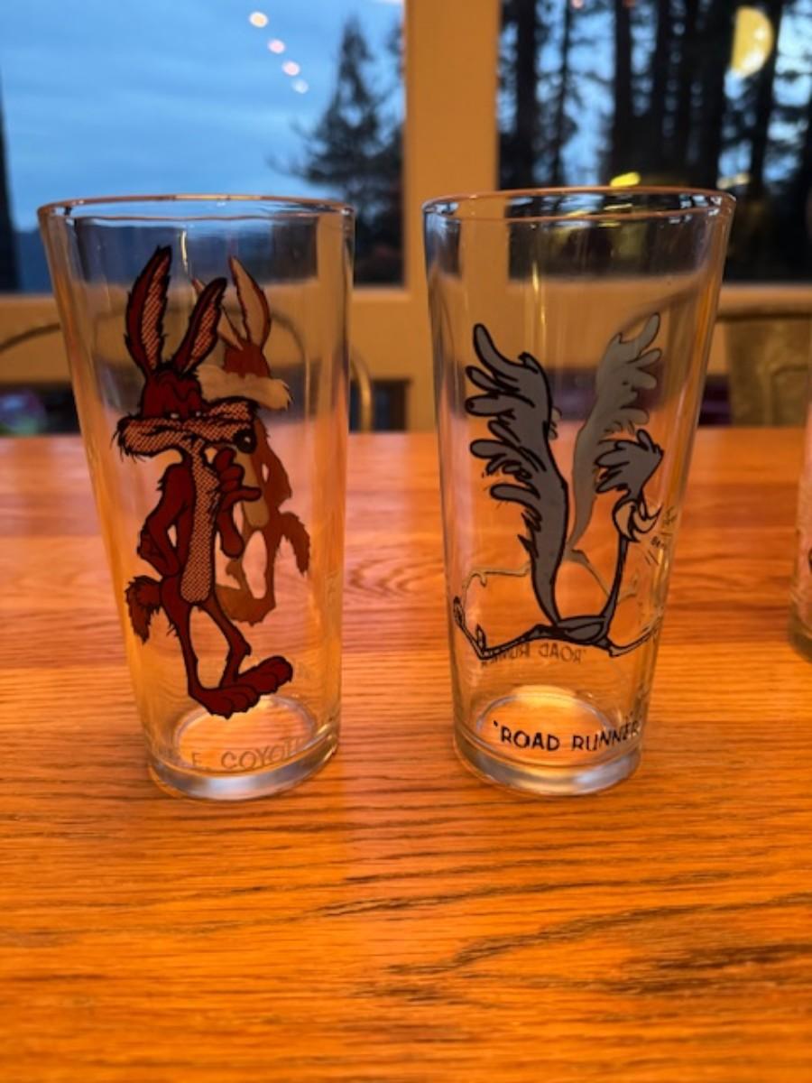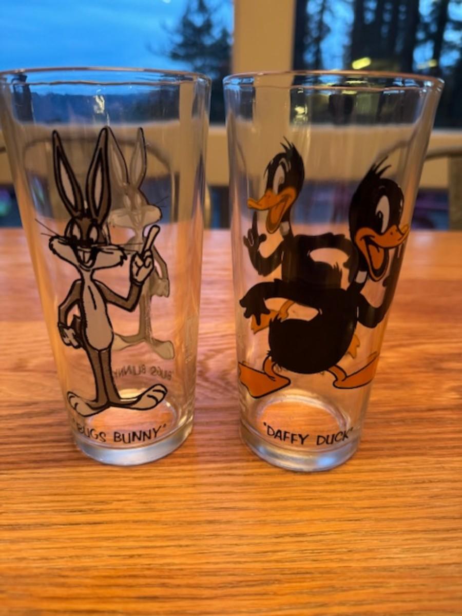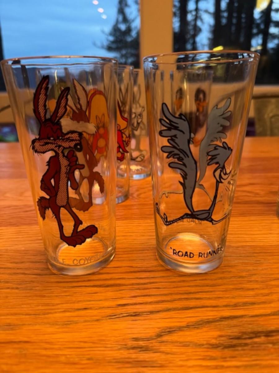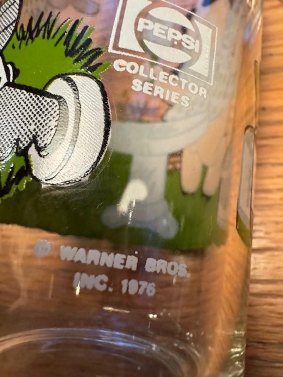 All are in very good condition. All dated 1973 except for Petunia and Porkey pig together glass dated 1976.