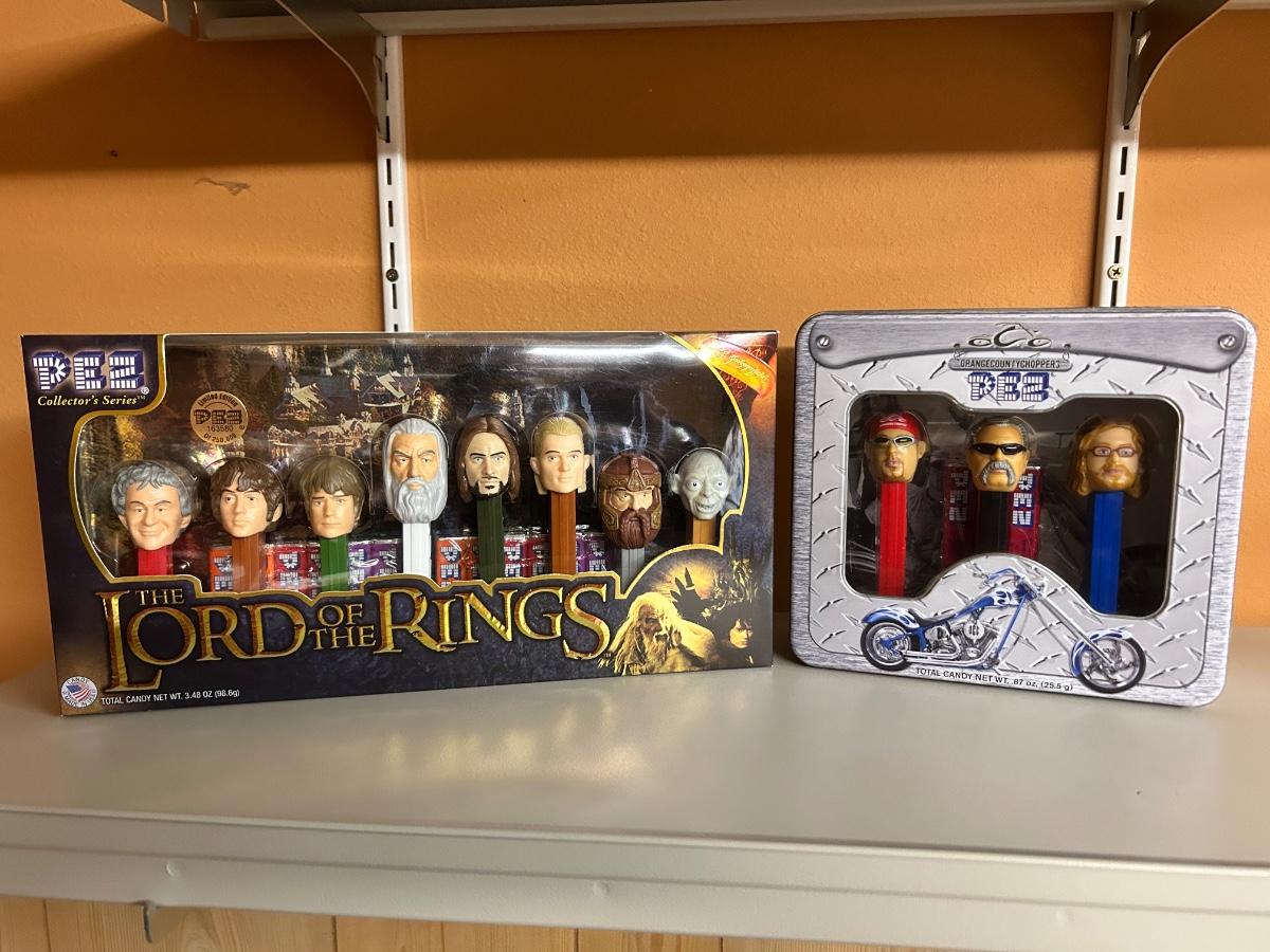LORD OF THE RINGS COLLECTIBLE PEZ IN ORIGINAL PACKAGING , AND ORANGE COUNTY CHOPPERS PEZ IN COLLECTIBLE TIN