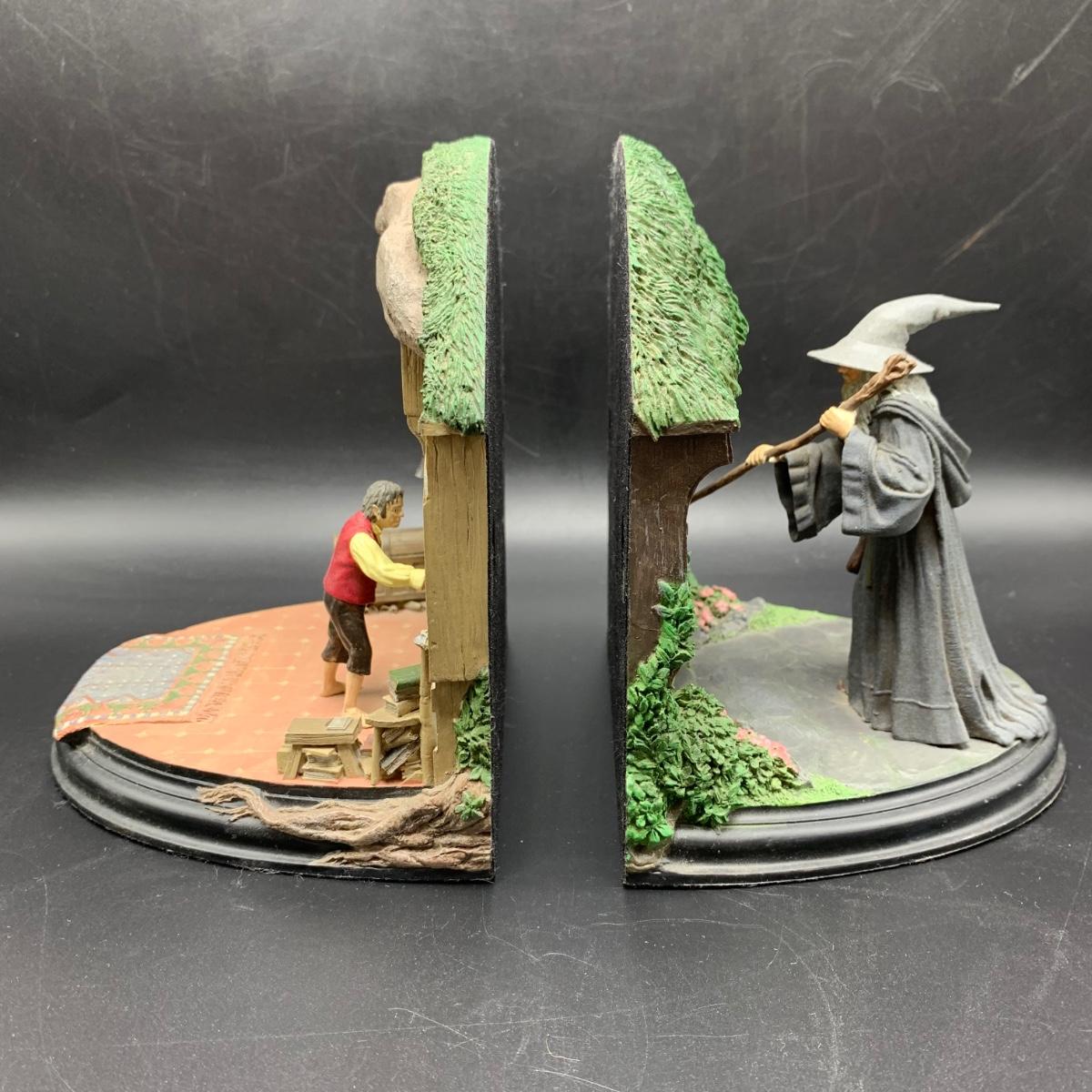 A set of Lord of the Rings “˜No Admittance’ bookends by Sideshow Weta Collectibles. Bookends feel like they are made of a hard resin material, with a soft velvet-lined base. Each bookend measures approximately 6” x 5” x 6.5”H.