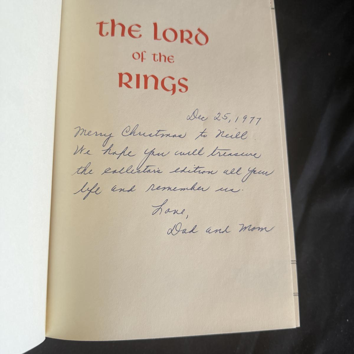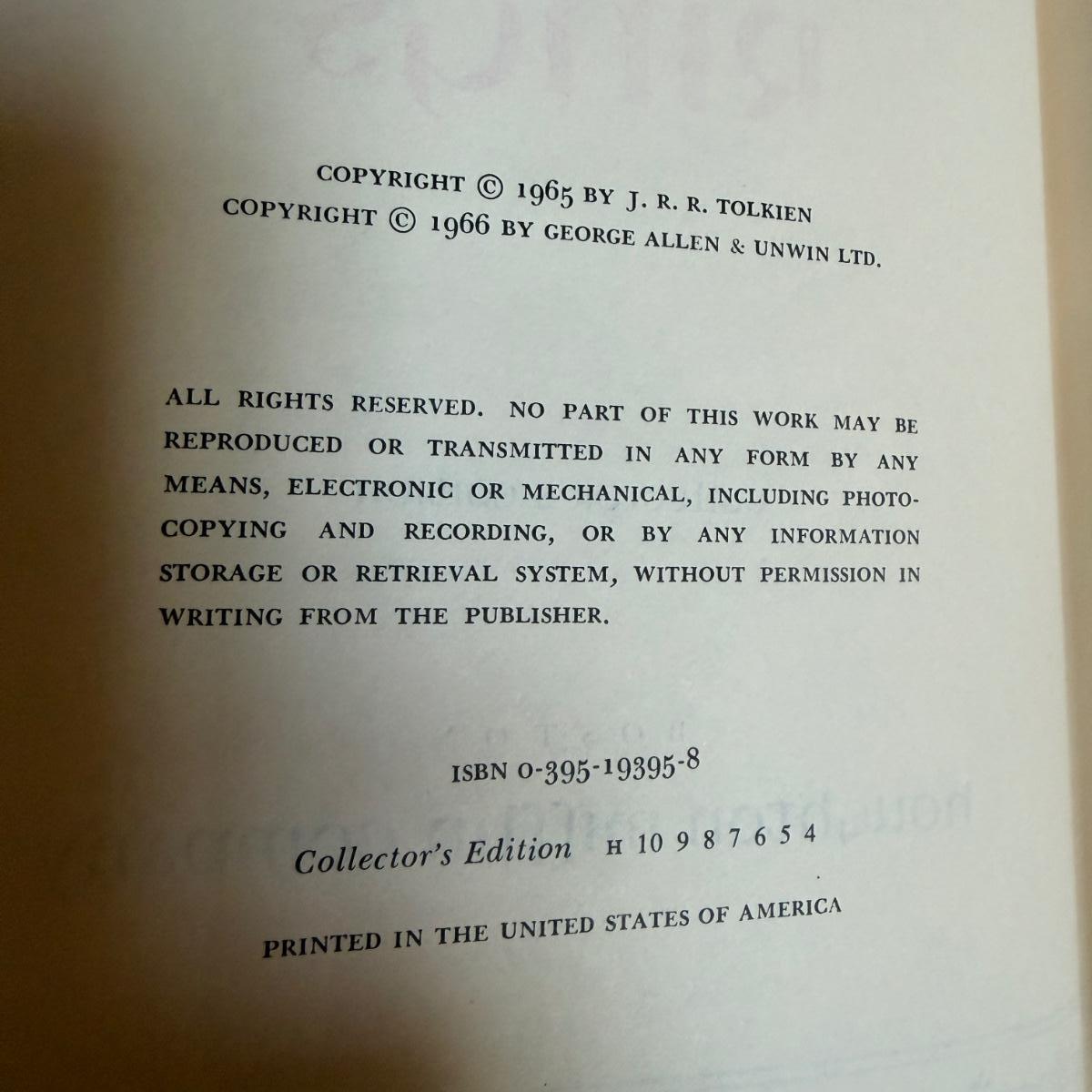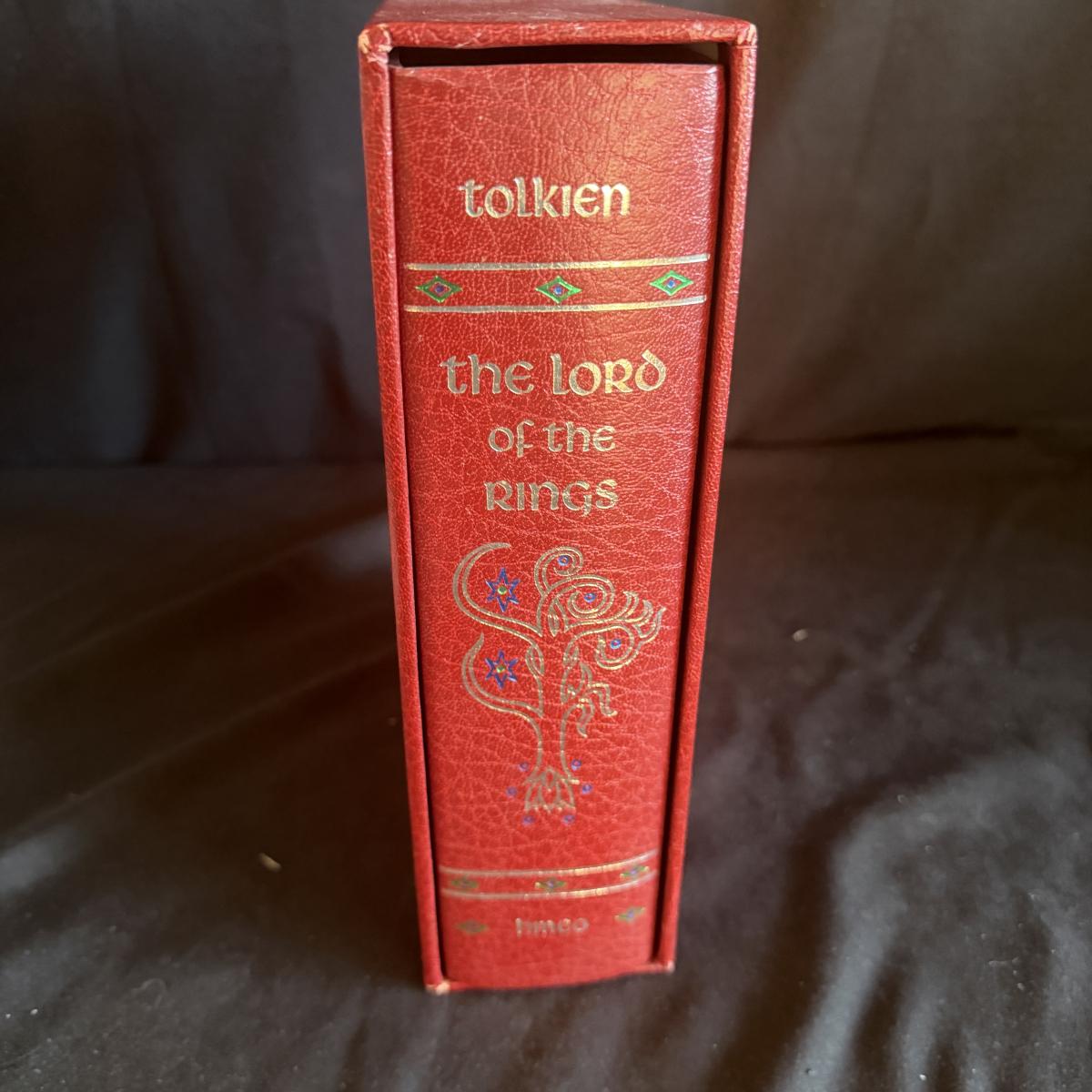These two books by JLL Tolkien includes The Lord of the Rings collectors edition in red leather with slip case and a paperback copy of Unfinished Tales. Lord of the ring book measures 3” x 7” x 10”H.