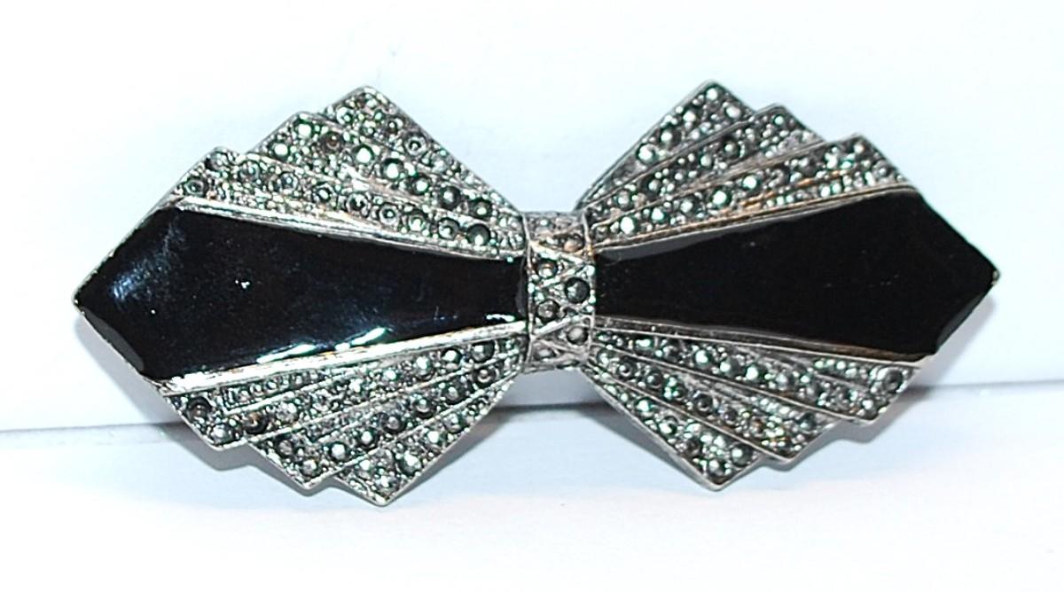 Lord & Taylor ART DECO BROOCH (2¾" x 1¼") with BLACK and Silver Highlights on a Silver Tone Setting