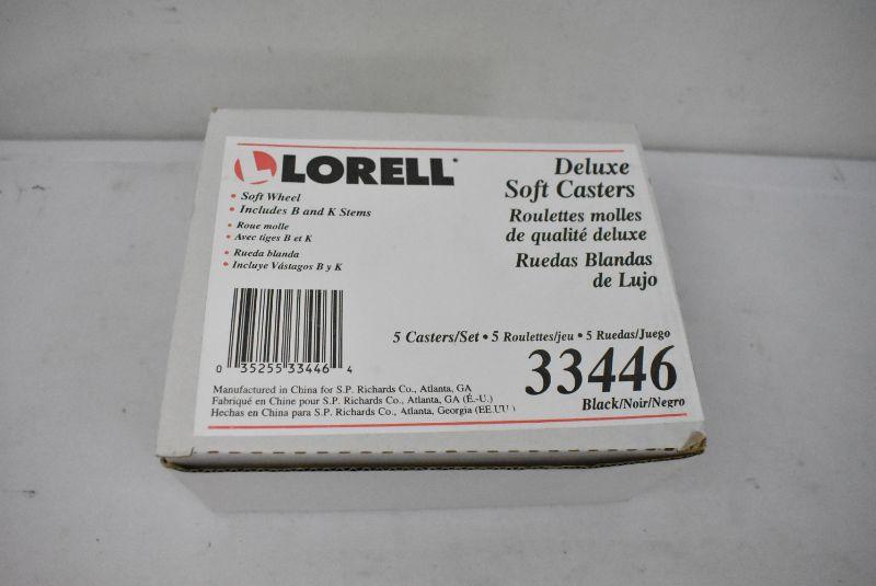 Lorell Deluxe Soft Casters, 5 Black Wheels with Hardware and Instructions, 33446 - New, Open Box