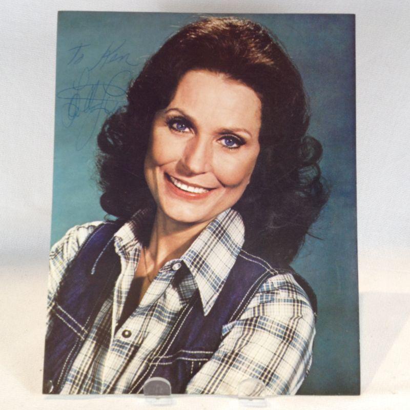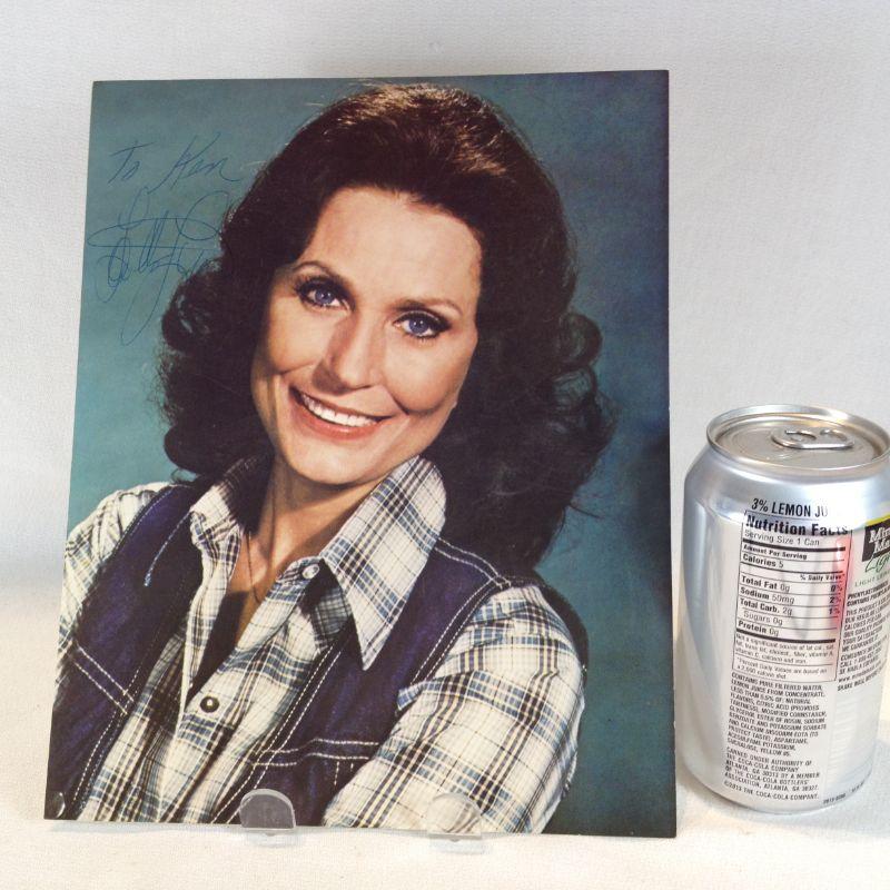 This is an authentic autographed studio print of a Loretta Lynn publicity shot inscribed to Ken - lucky Ken got to meet the coal miner's daughter but now you can own his personal trophy. It measures 8 X 10-inches in very good condition and ready for your frame or scrapbook.