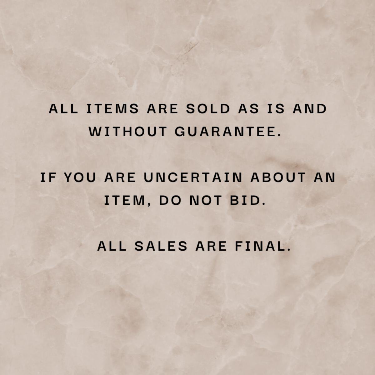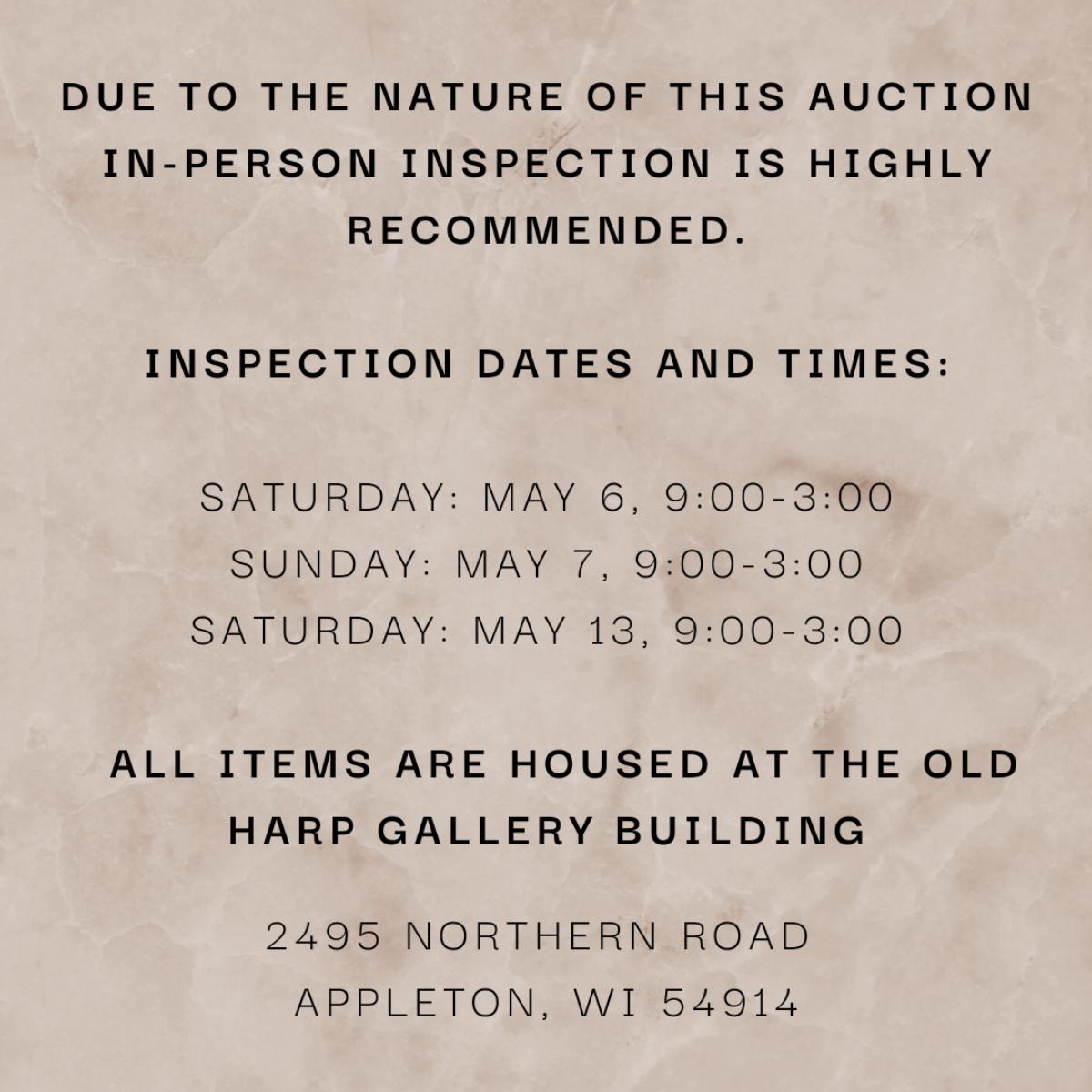 All items sold as is and without guarantee. 5.5% sales tax collected on applicable sales. 10% Buyer’s Premium collected on all sales. Cash, WI Check, and ALL Credit Cards accepted without fee in person. Payment in advance accepted through online portals here on EstateSales.Org.