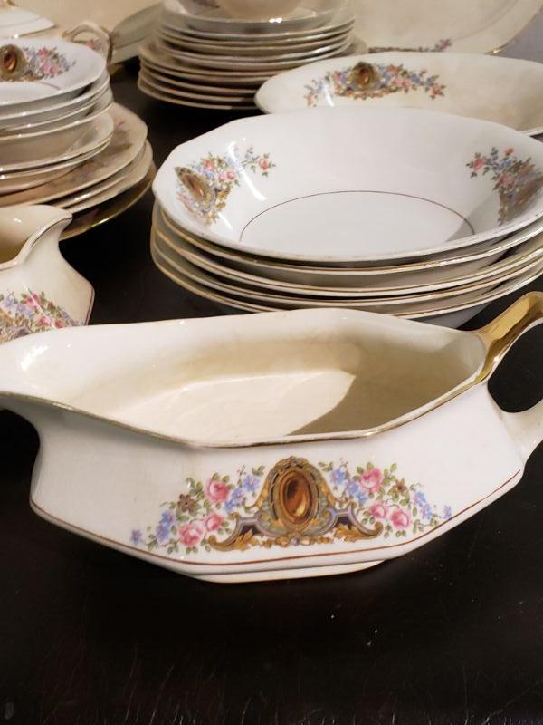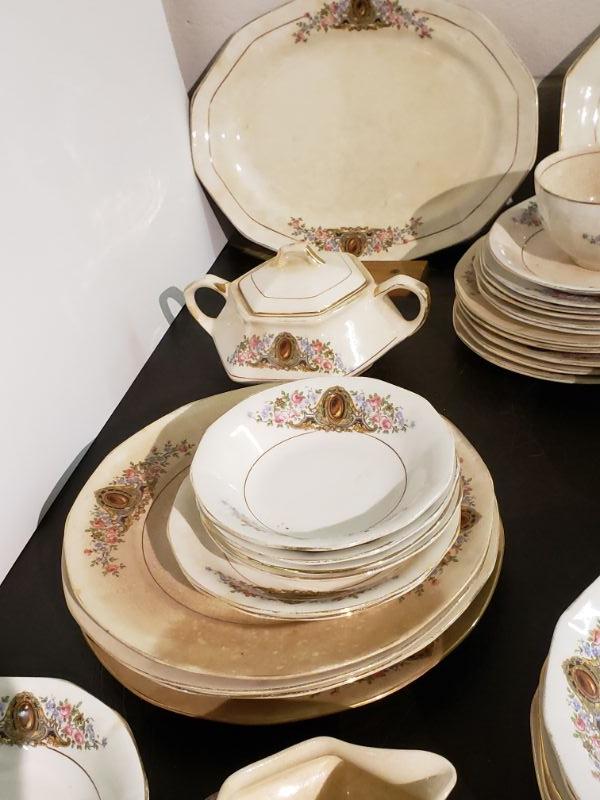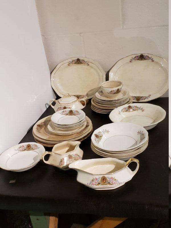 Vintage 1040's S.C. Co. Martha Washington China. Total of 34 pieces. Needs a deep cleaning and evidence of crazing in some pieces. Lot# 0002