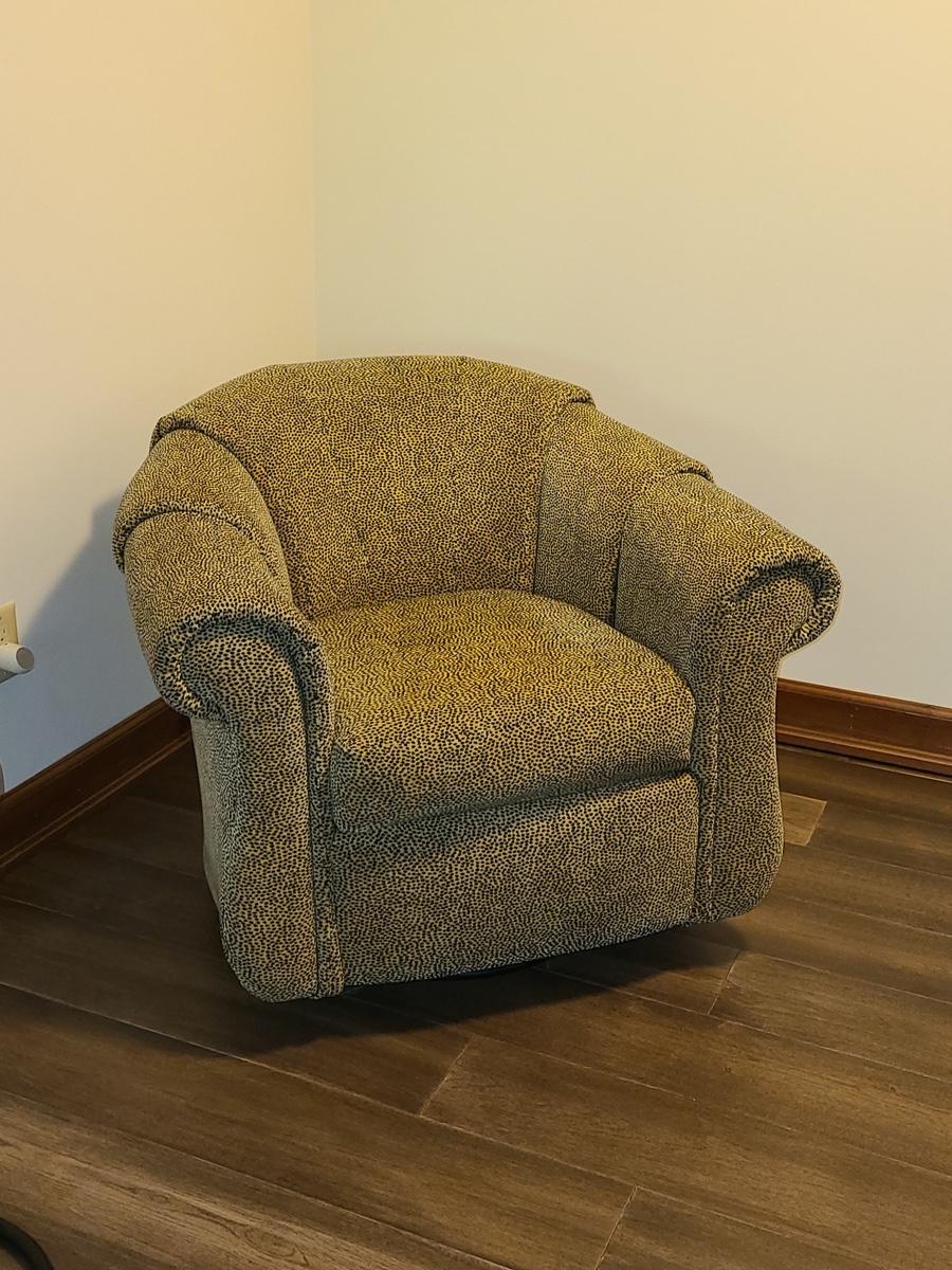 H31”xL33” Comfortable Rocking/Swivel accent chair in very good used condition.
